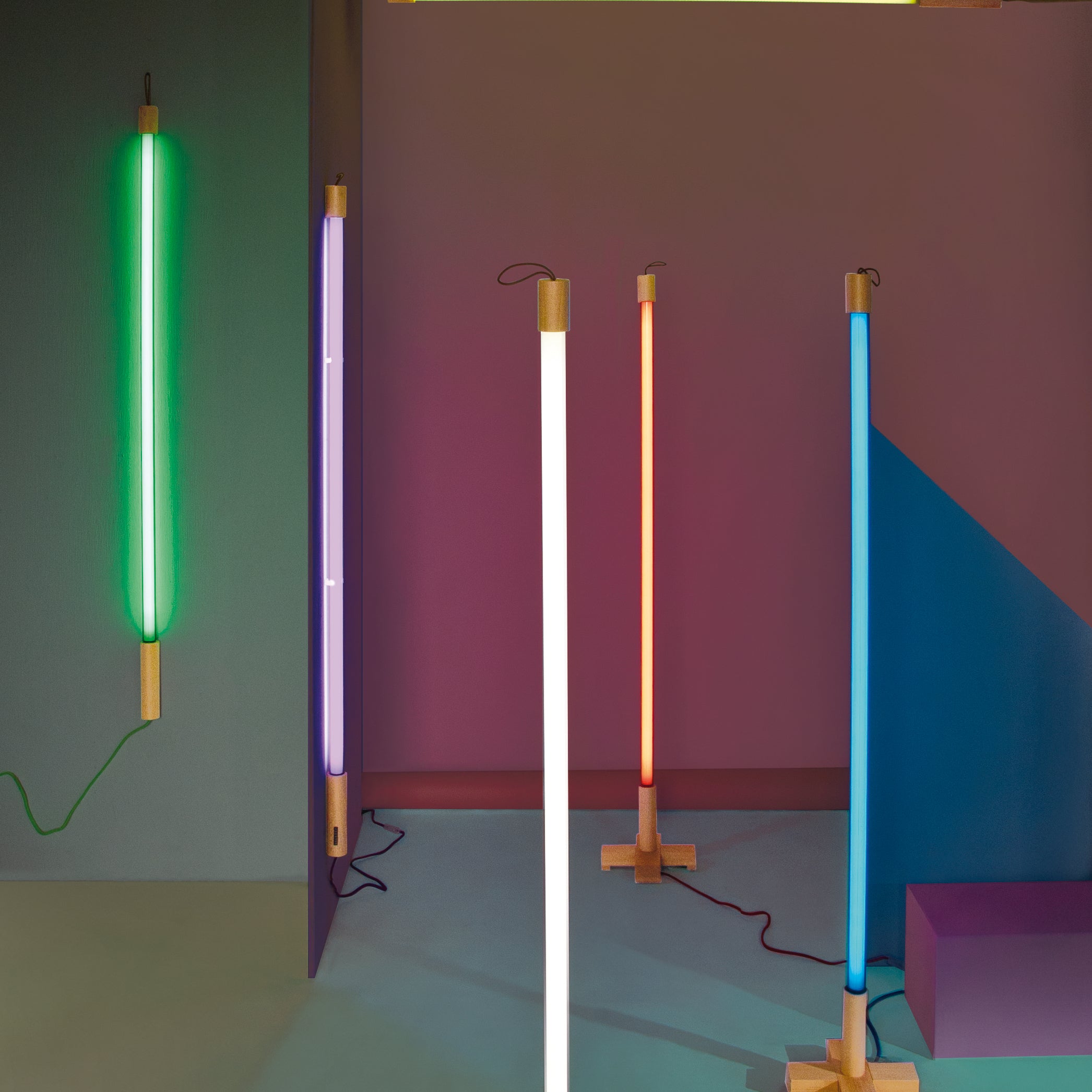 - Houten voetstuk voor de Seletti Linea lamp