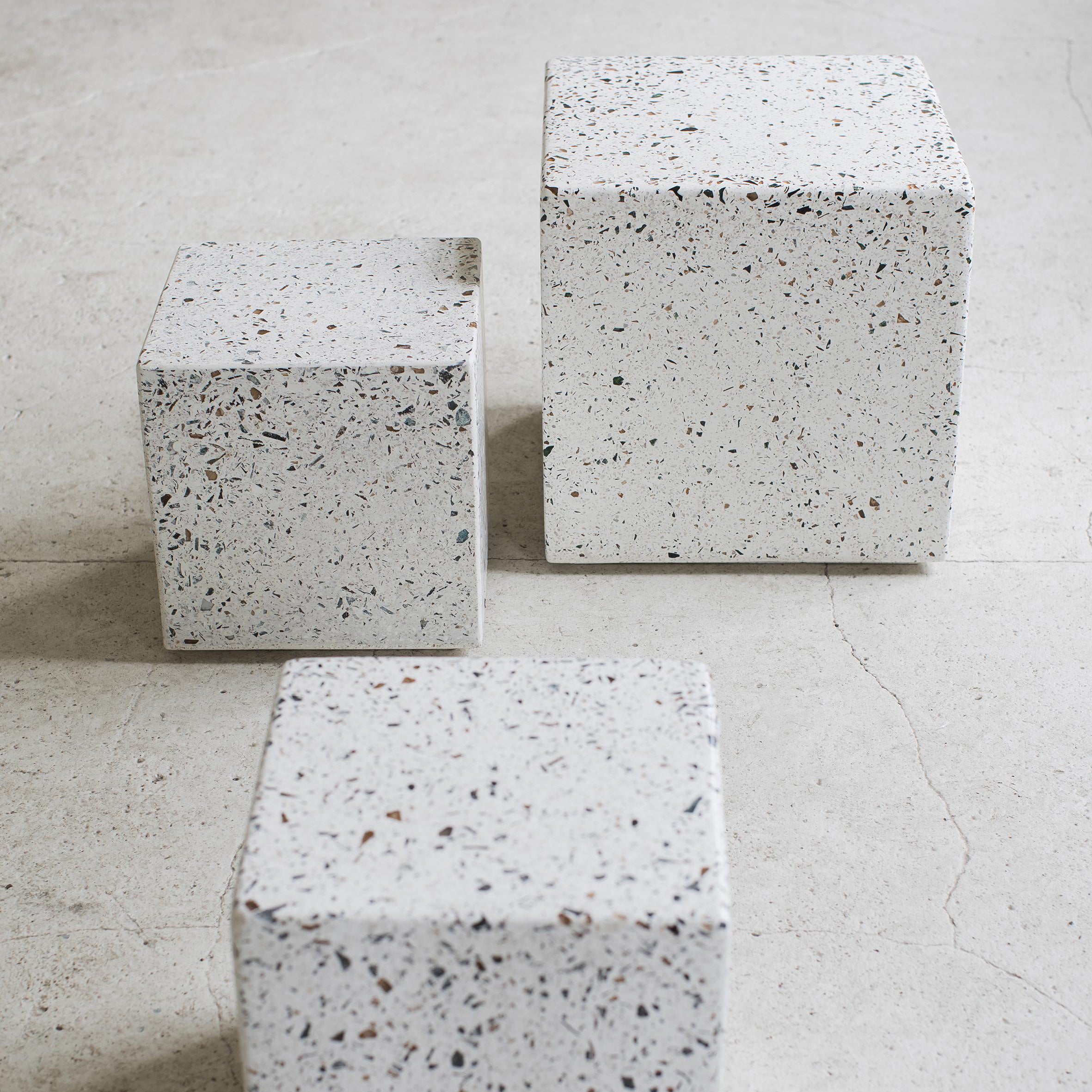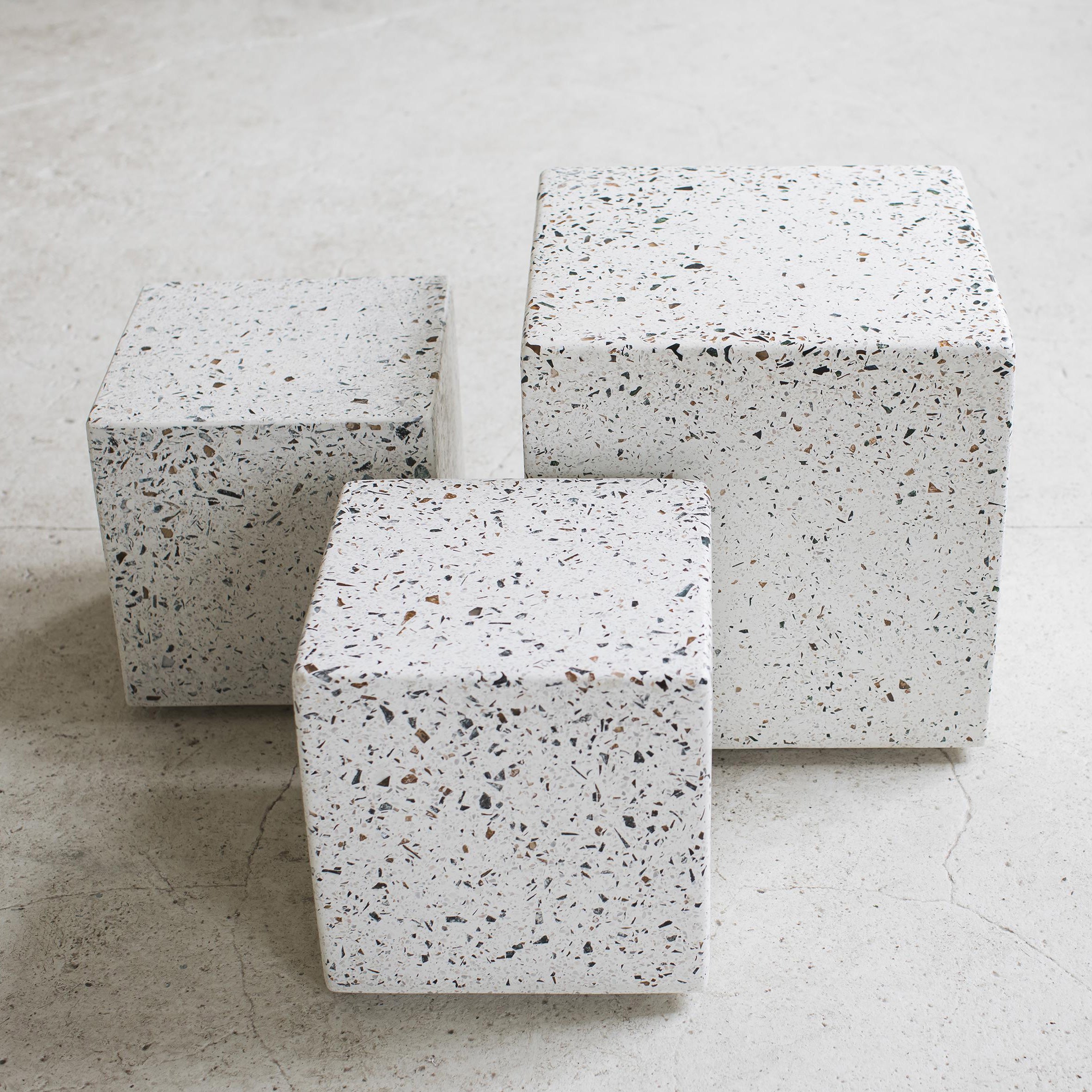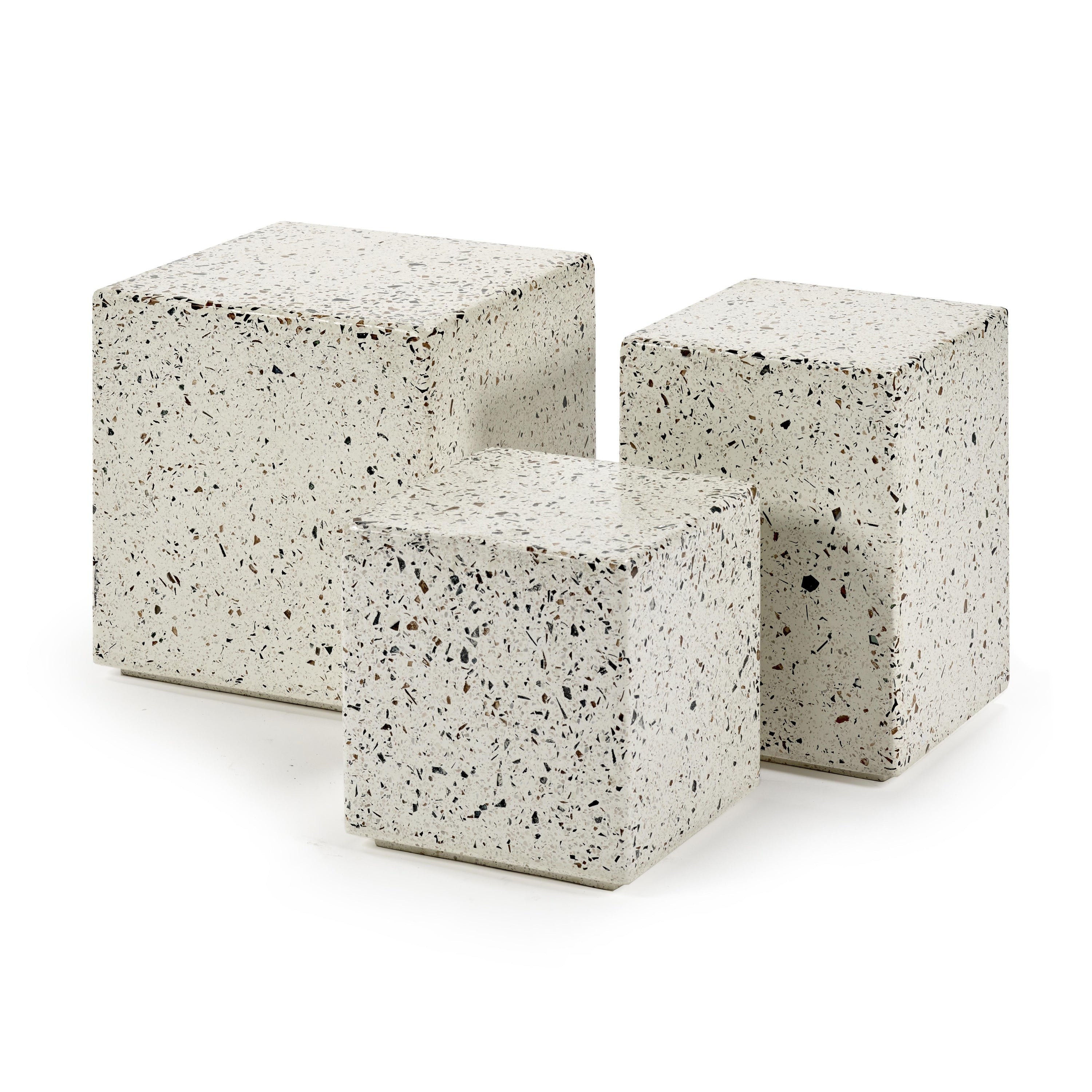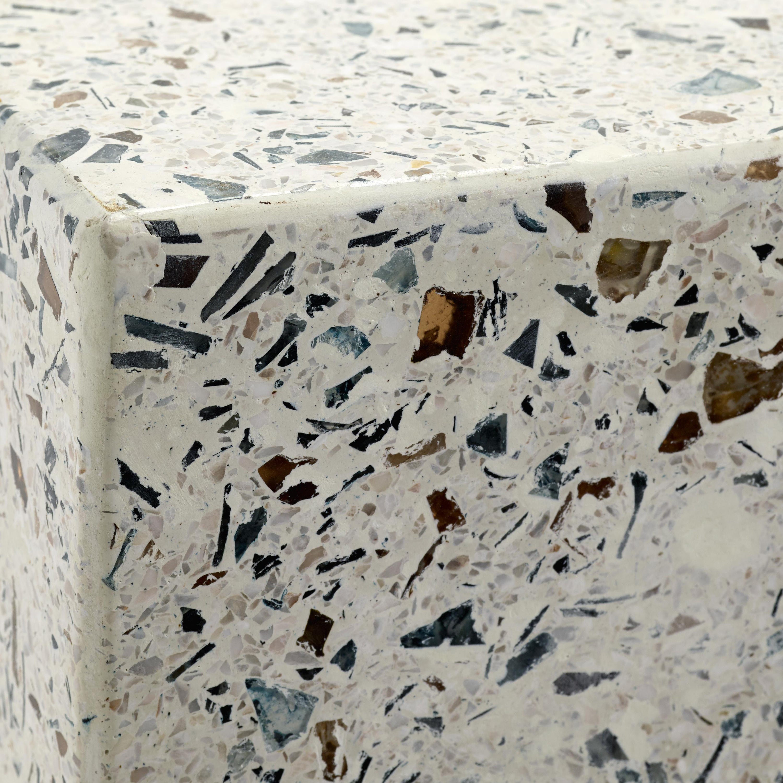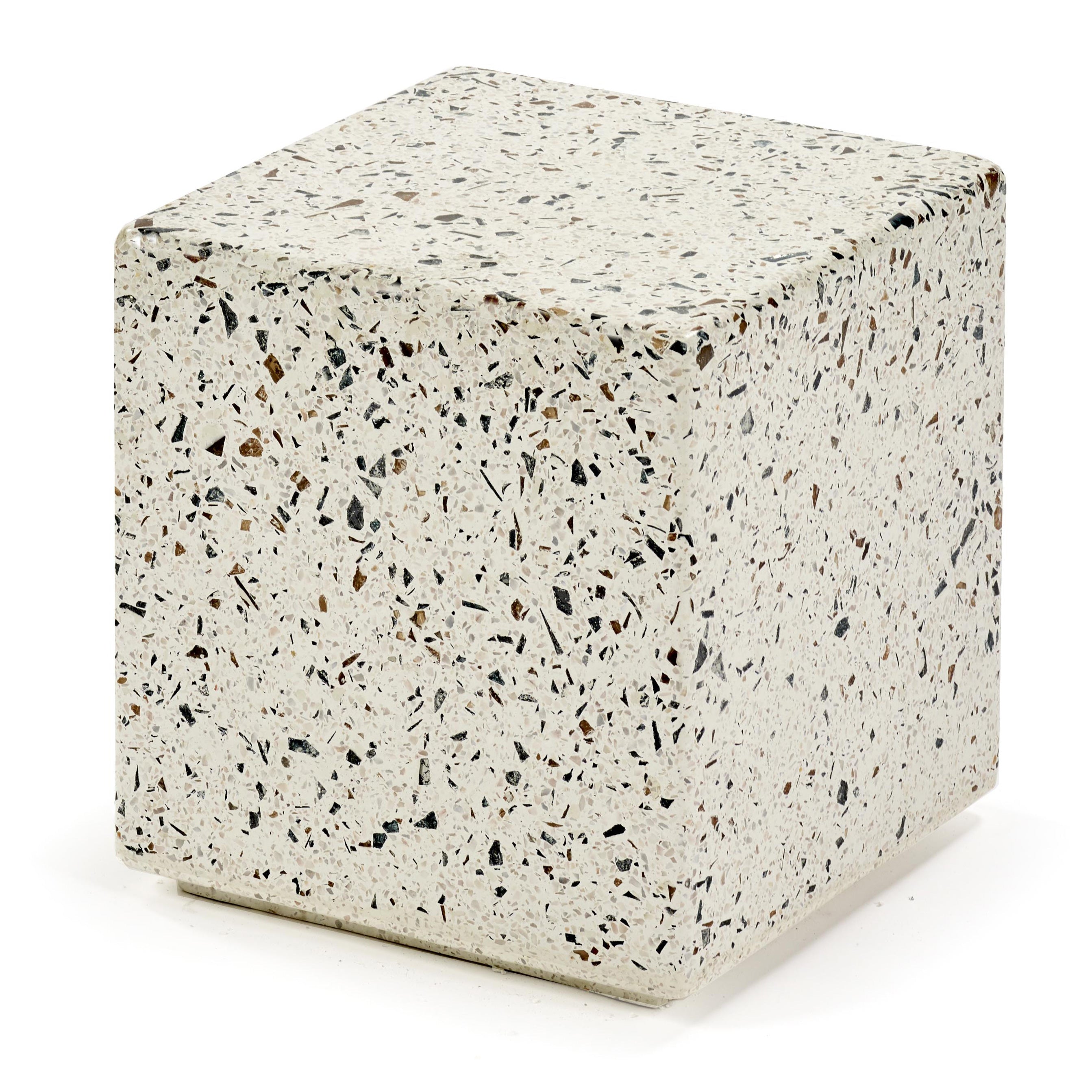 Bijzonder materiaal Terrazzo bestaat uit sterk steen, dat is gemixt met marmerkorrels. Dit zorgt voor het bijzondere, gespikkelde effect. Deze sterke steensoort is veel te zien in tafels en bankjes, maar ook in klassieke vloeren.