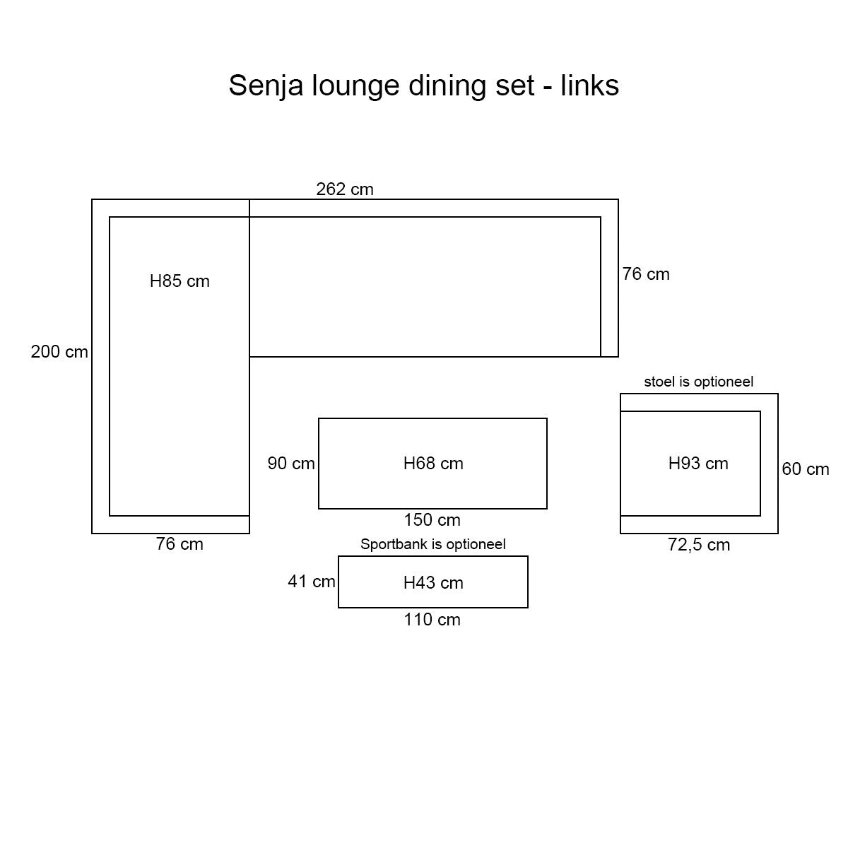 Met de Sergio lounge diningset haal je een multifunctioneel meubelstuk in huis dat niet alleen praktisch is, maar ook bijdraagt aan de sfeer en het comfort van je buitenomgeving. Geniet van de perfecte balans tussen stijl en functionaliteit!