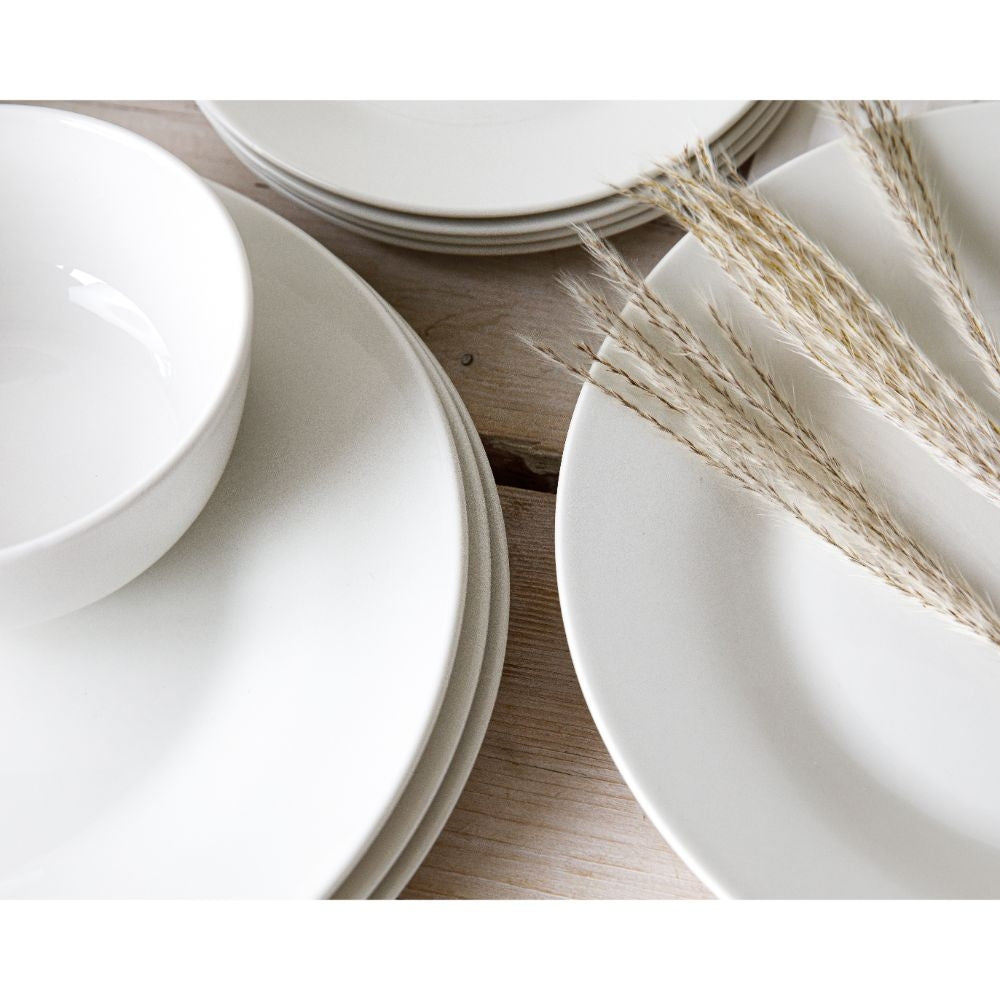 Met de Alexis servies set van Mikasa heb je de perfecte basis voor op tafel. De 12-delige set heeft een coupestijl wat hem modern, eenvoudig en veelzijdig maakt. Het hoogwaardige porselein heeft een zuivere, witte kleur en is geschikt voor zowel dagelijks gebruik als speciale gelegenheden. Ook zijn de onderdelen bestand tegen de magnetron en de vaatwasser.