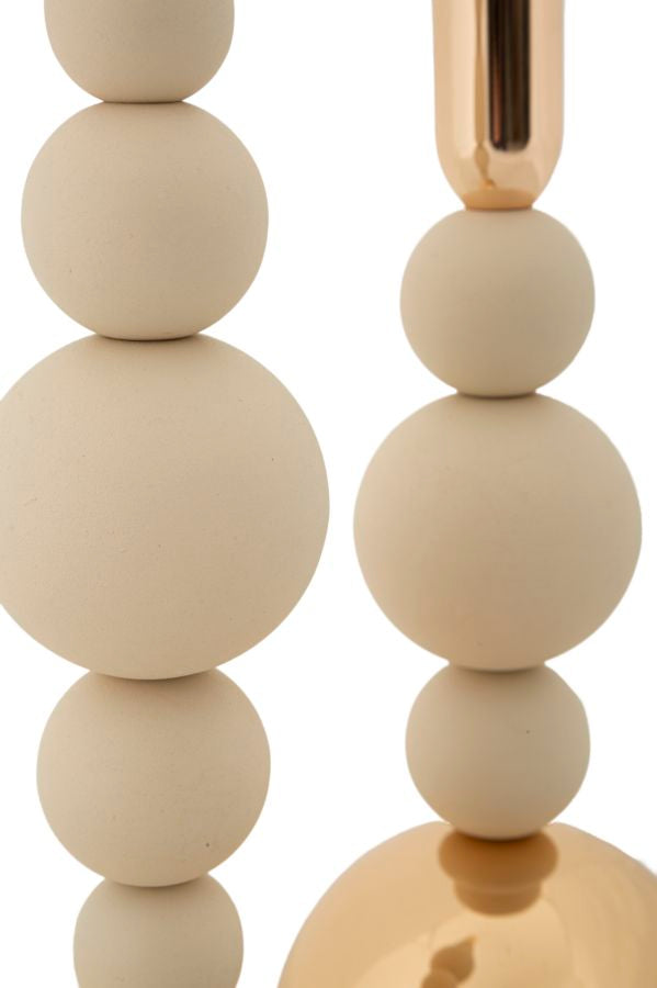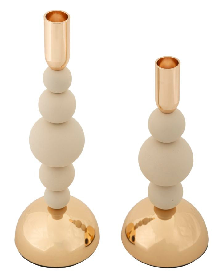 Set van 2 crèmekleurige en gouden metalen kaarsenhouders