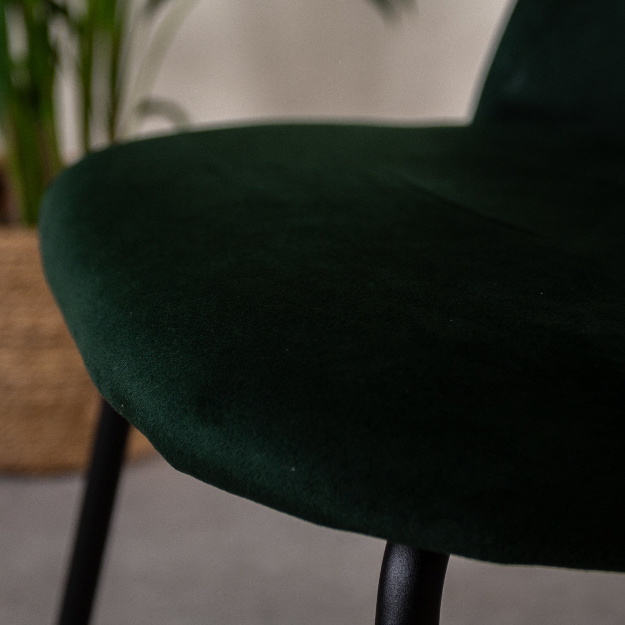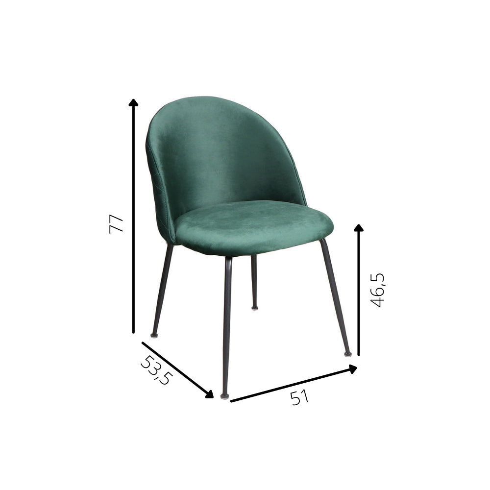 Materiaal bekleding De eetkamerstoel is bekleed met velvet. Fluweel is een stofsoort ontstaan in Azië en dat rond 1400 is overgewaaid naar Europa. Bij fluweel worden er kleine lusjes geweven. Hierdoor ontstaat er aan de bovenkant een zachte, glanzende stof.
