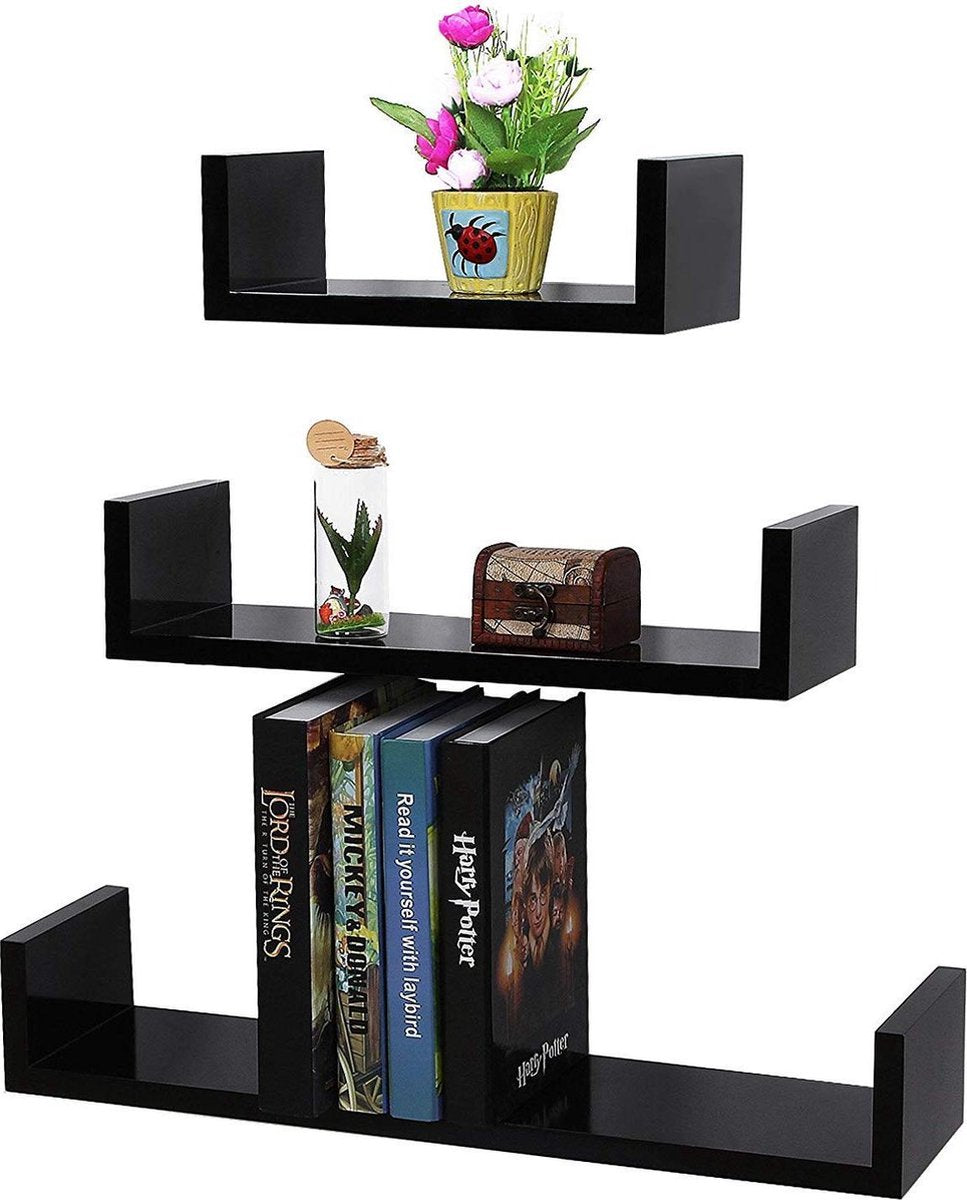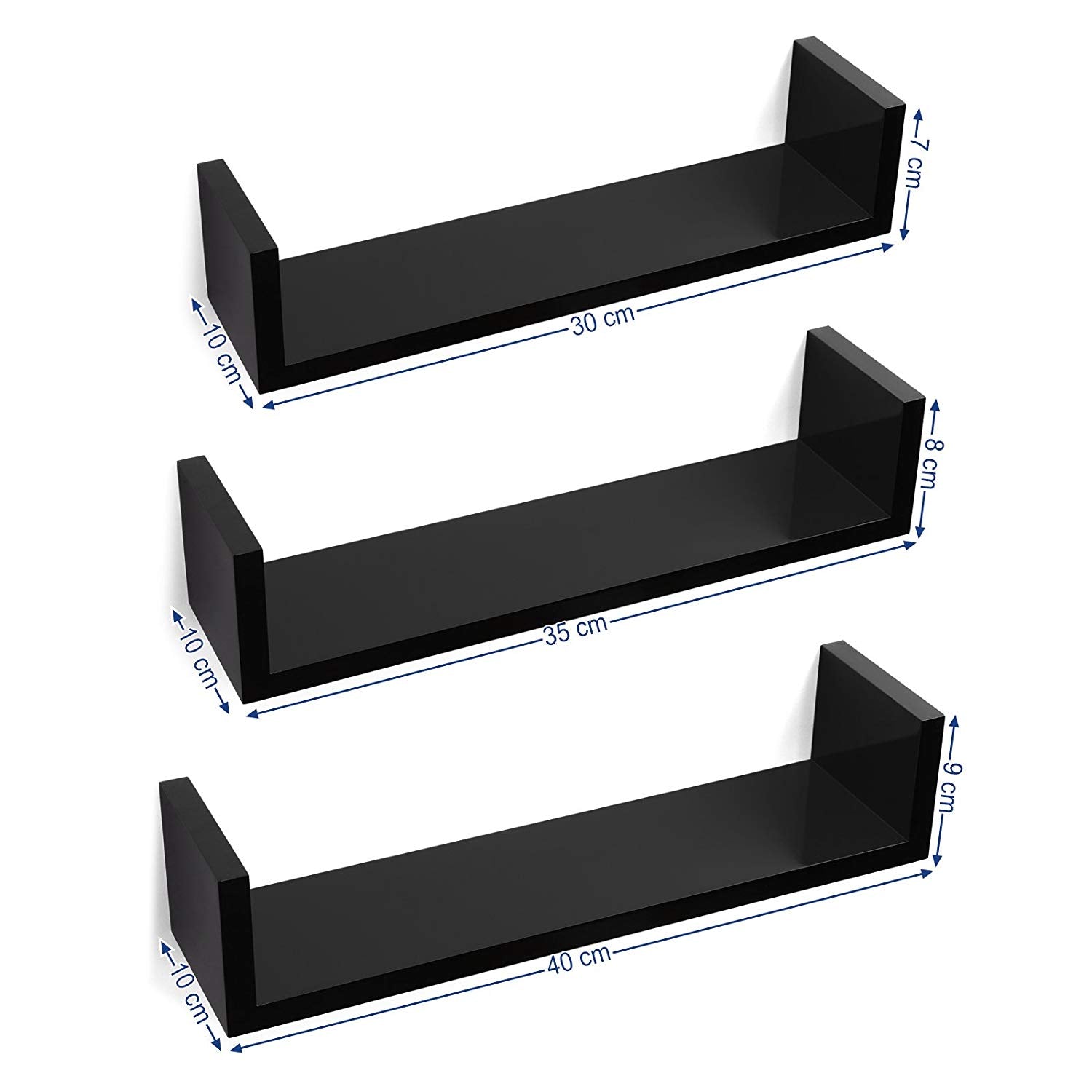 Heb je nog plaats tekort voor je boeken of wil je jouw huis wat opfleuren door het hier en daar wat meer te decoreren? Dan zijn deze muurplanken wat je zoekt!Voordelen:▶ Stevig: Met een draagcapaciteit van 3 kg, 4 kg en 5 kg, kan je zeker genoeg boeken en decoratie kwijt op deze planken.▶ Veel plaats: Aangezien dit een set van 3 is, zal je zeker ruim genoeg plaats hebben.Eigenschappen:✔ Afmetingen: Plank 1: 7 cm Hoog x 30 cm Breed x 10 cm Diep✔ Plank 2: 8 cm Hoog x 35 cm Breed x 10 cm Diep✔ Plank 3: 9 cm Hoog x 40 cm Breed x 10 cm Diep✔ Kleur: Zwart✔ Materiaal: MDF