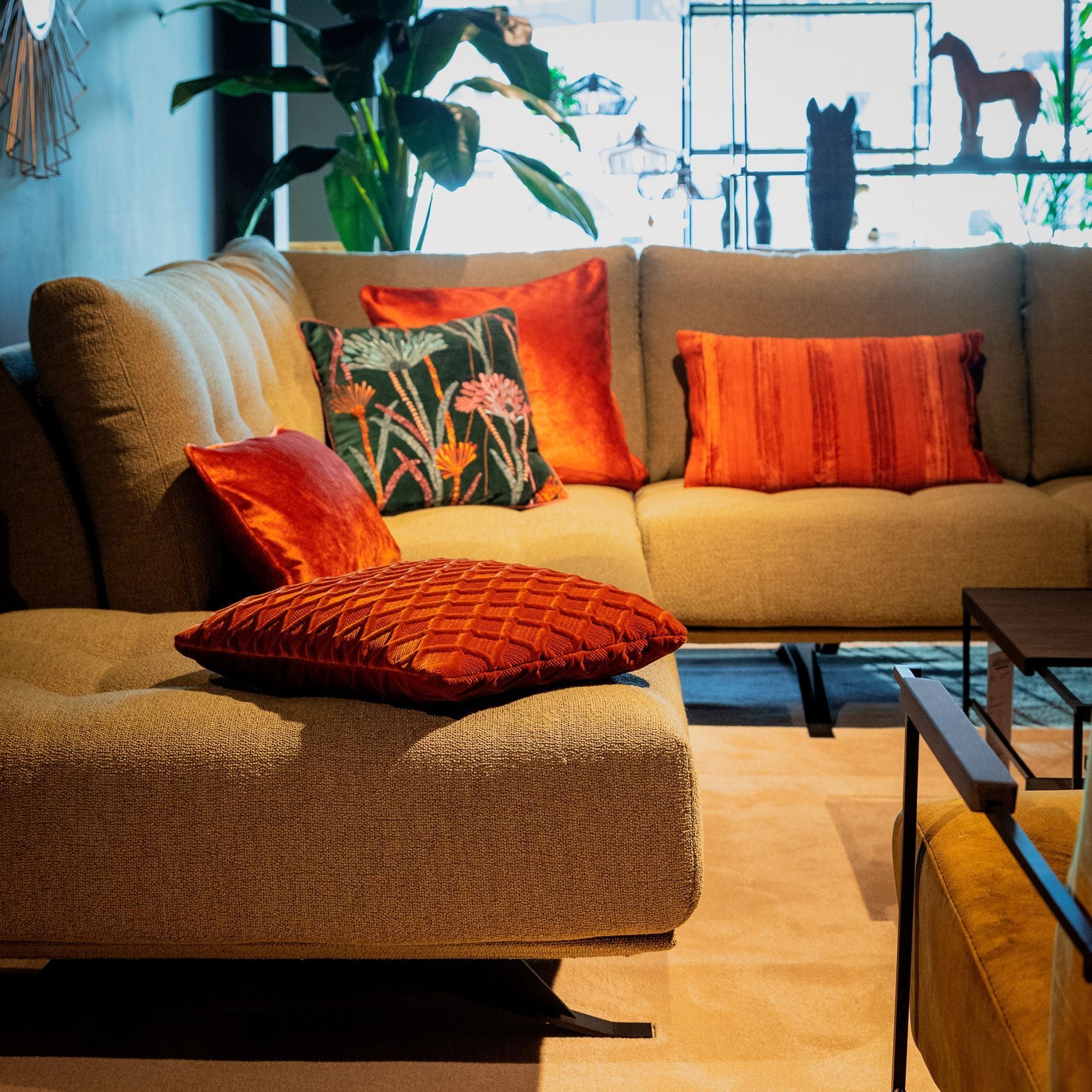 - Sierkussen Antoinette, Potters Clay (oranje), 45x45 cm.