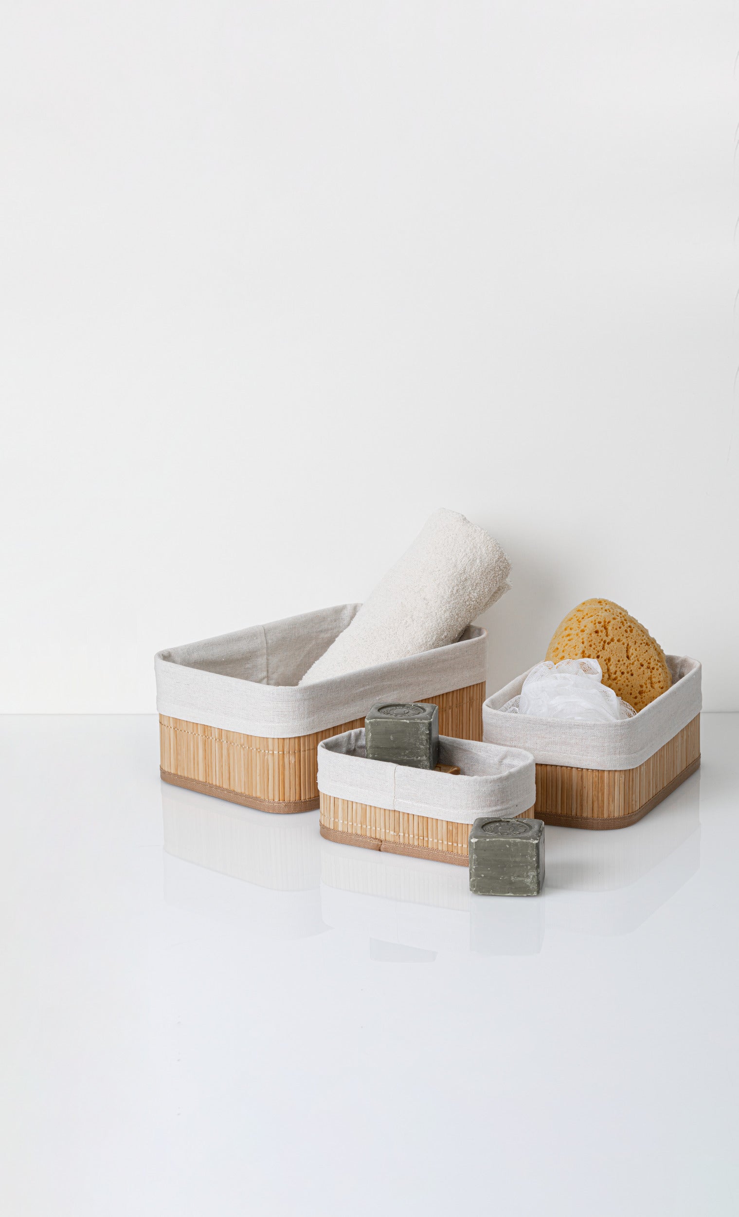 Set van 3 stuks Opbergmanden Bamboe - Wit – L: 30x20x12cm, M: