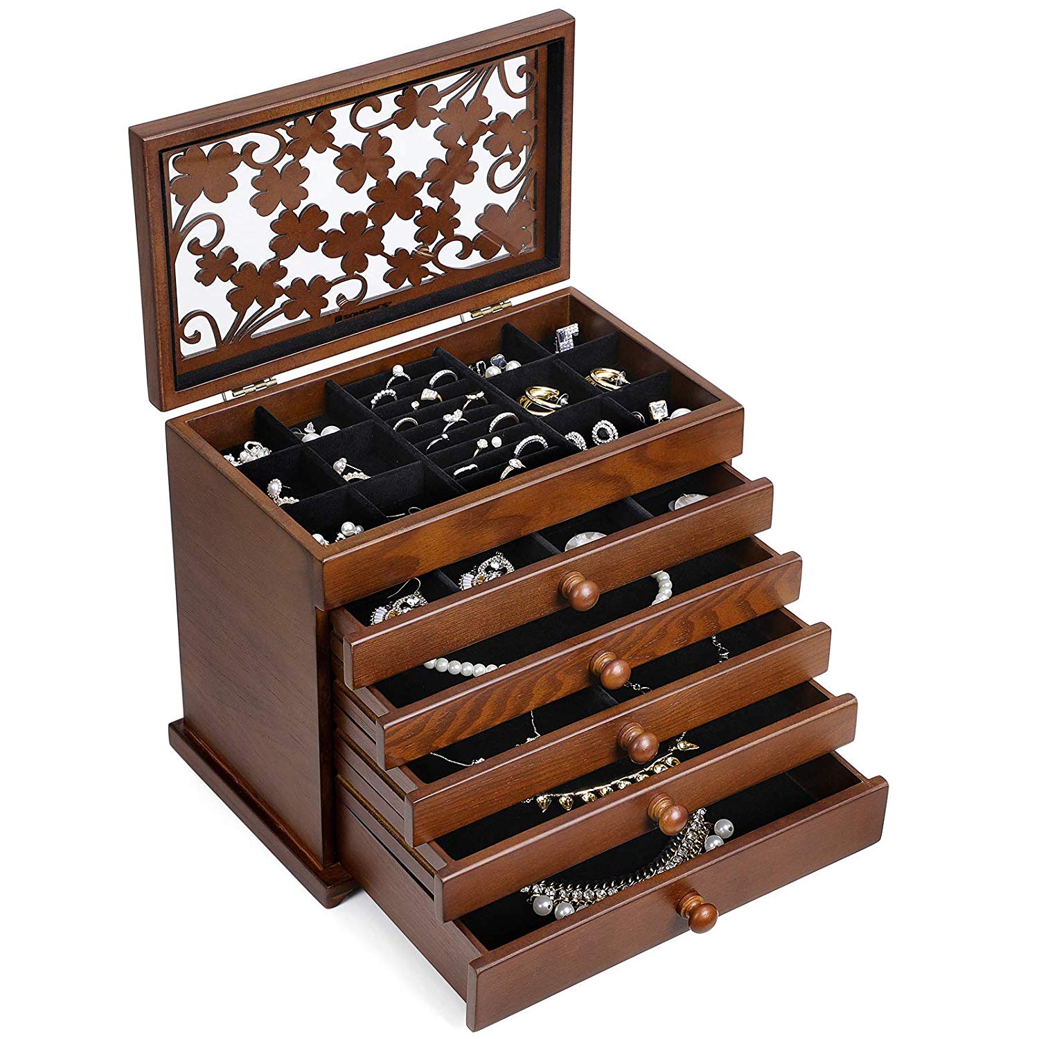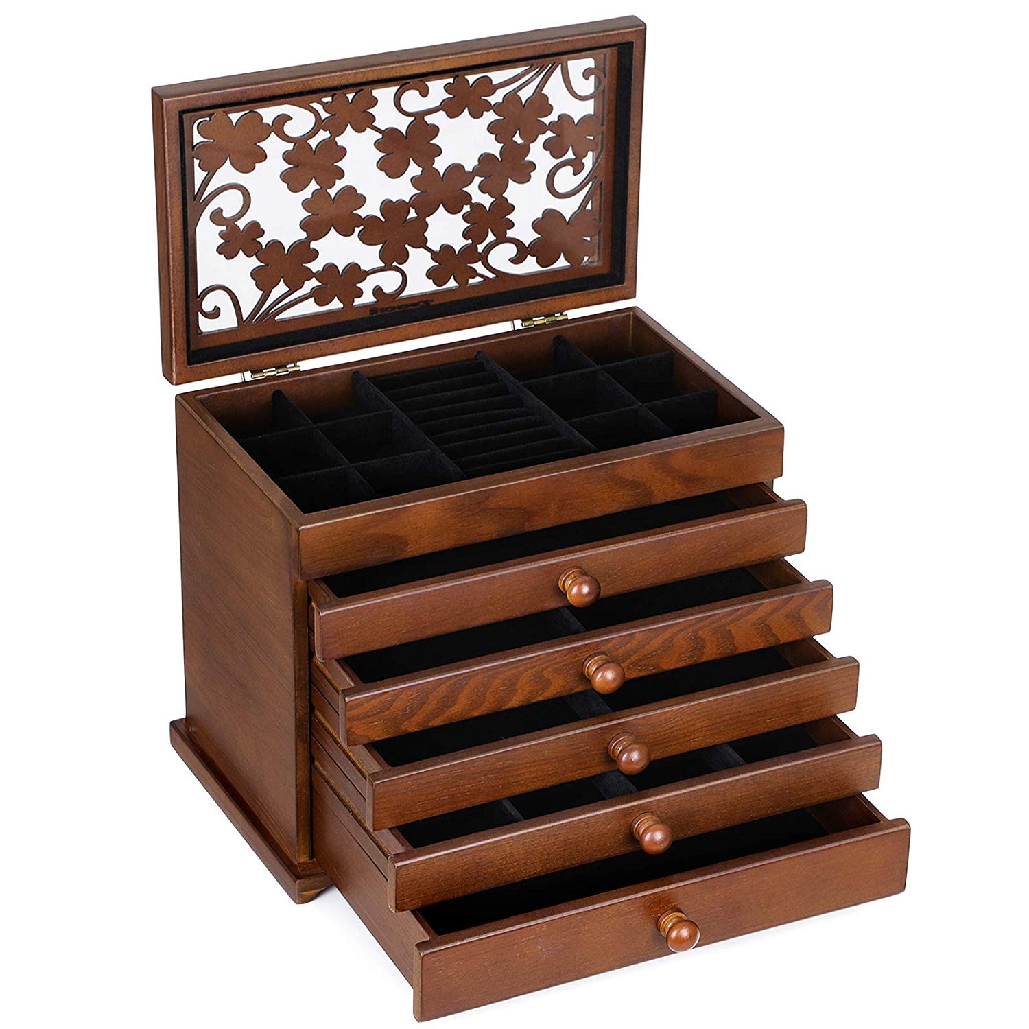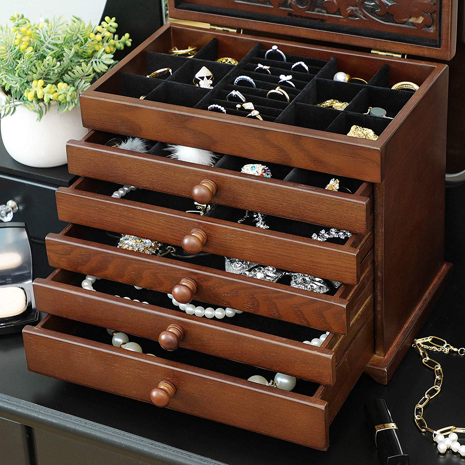 Sieradendoos - vintage - met 6 niveaus - donkerbruin