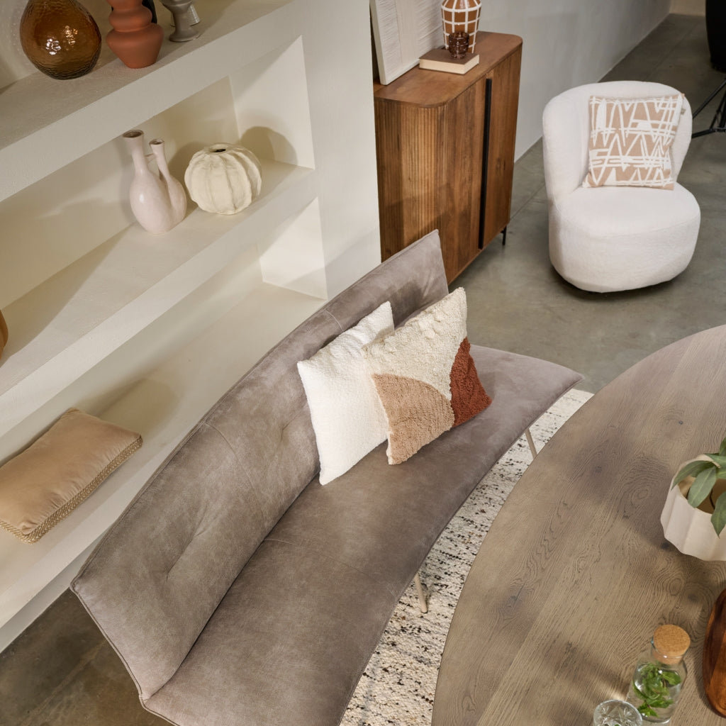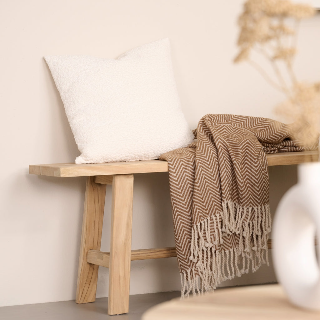 Sierkussen Ambie is een tijdloos sierkussen dat past in vrijwel iedere interieurstijl. De warm witte kussenhoes heeft een rijke bouclé structuur aan beide zijden. Het sierkussen oogt niet alleen comfortabel, maar voelt ook extra zacht aan. Combineer het met andere sierkussens voor een sfeervolle look. Specificatie: - Afmeting 45x45 cm - Bouclé stof van 100% polyester - Met rits en binnenkussen