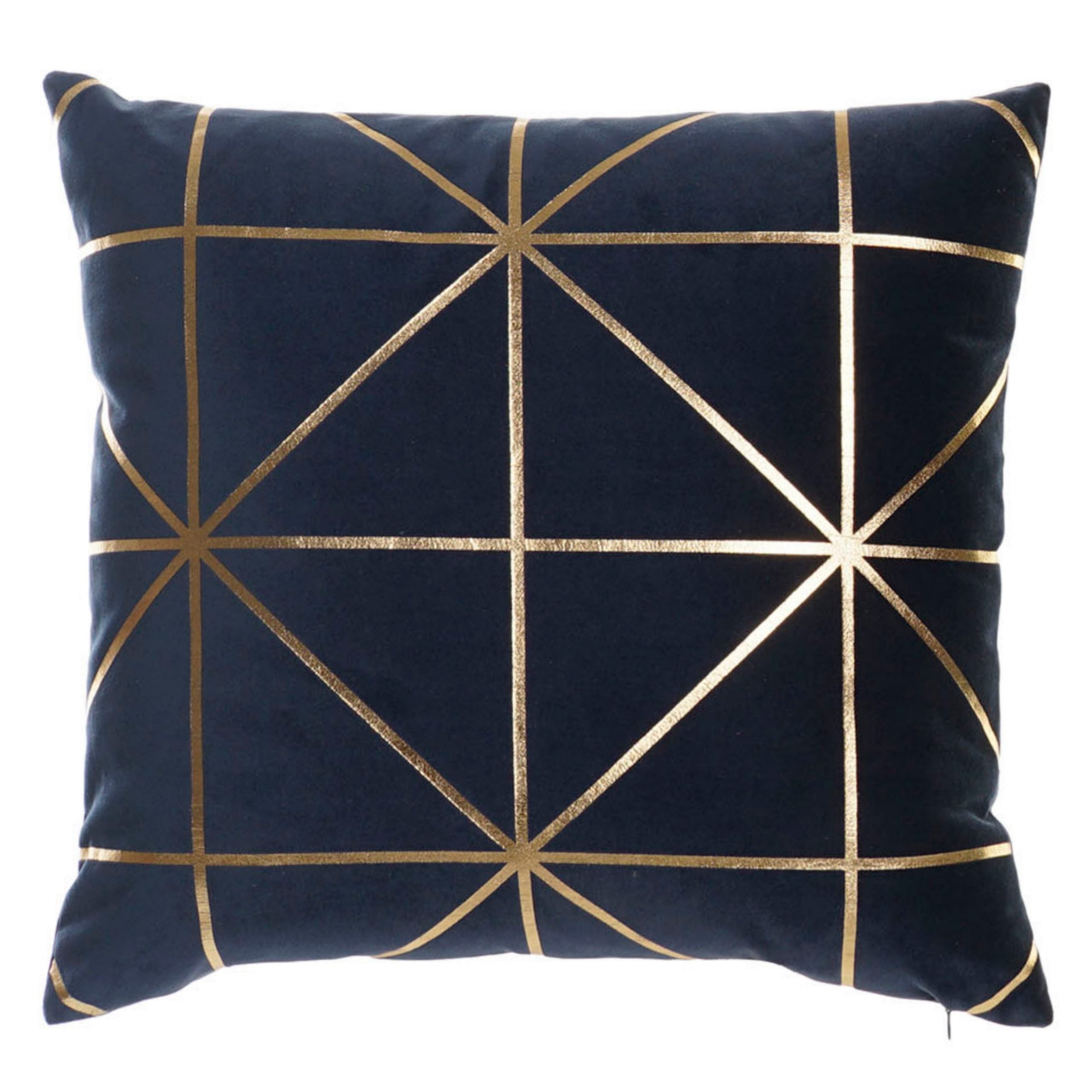Sierkussen Velvet Geometrie - Blauw & Goud - 45 x 45 cm (incl.