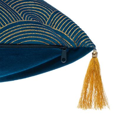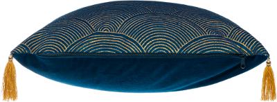 Sierkussen Velvet Pauw met kwastjes - Blauw - Goud - 40 x 40 cm (incl.