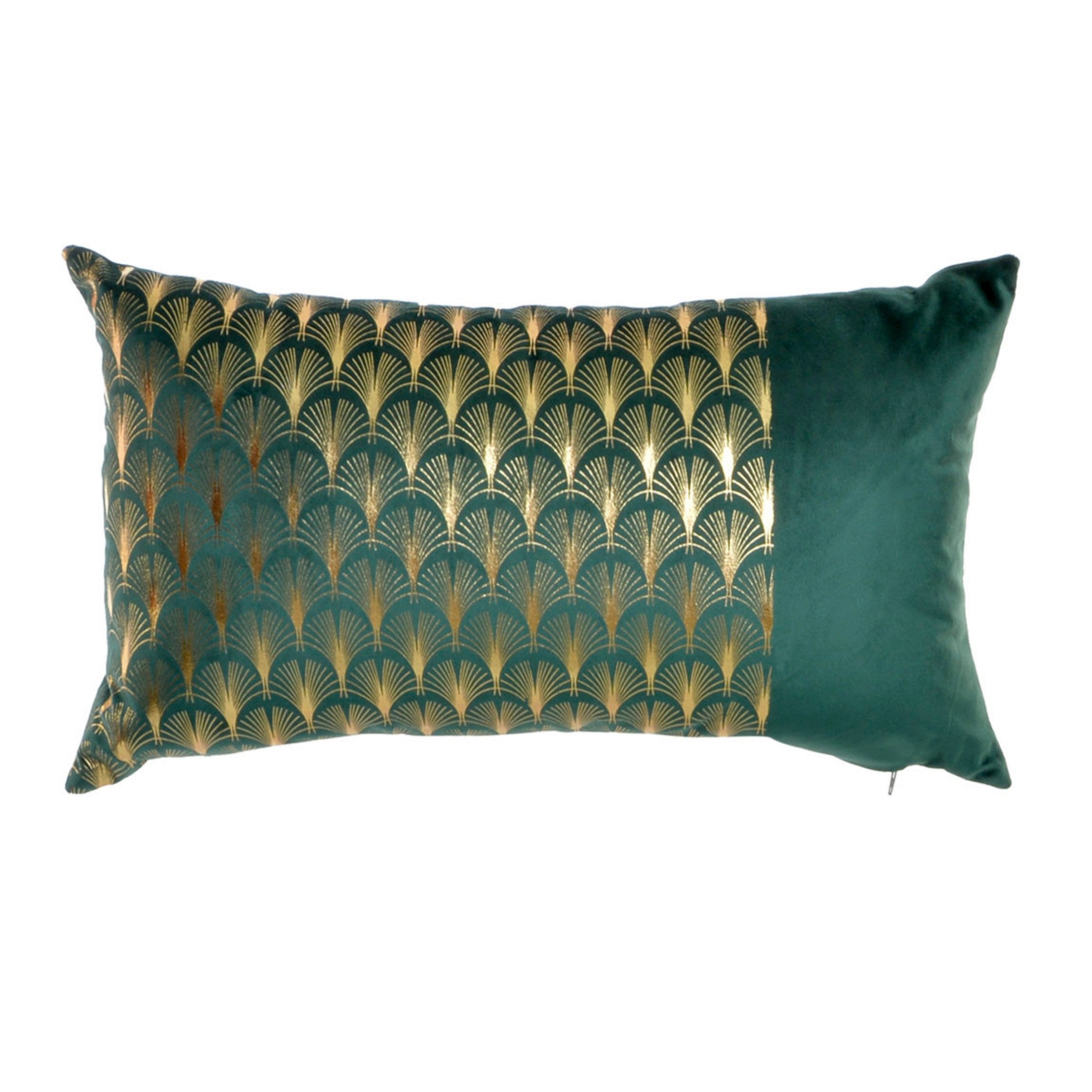 Sierkussen Velvet Pauw – Tijm Groen – Goud – 30 x 50 cm (incl.