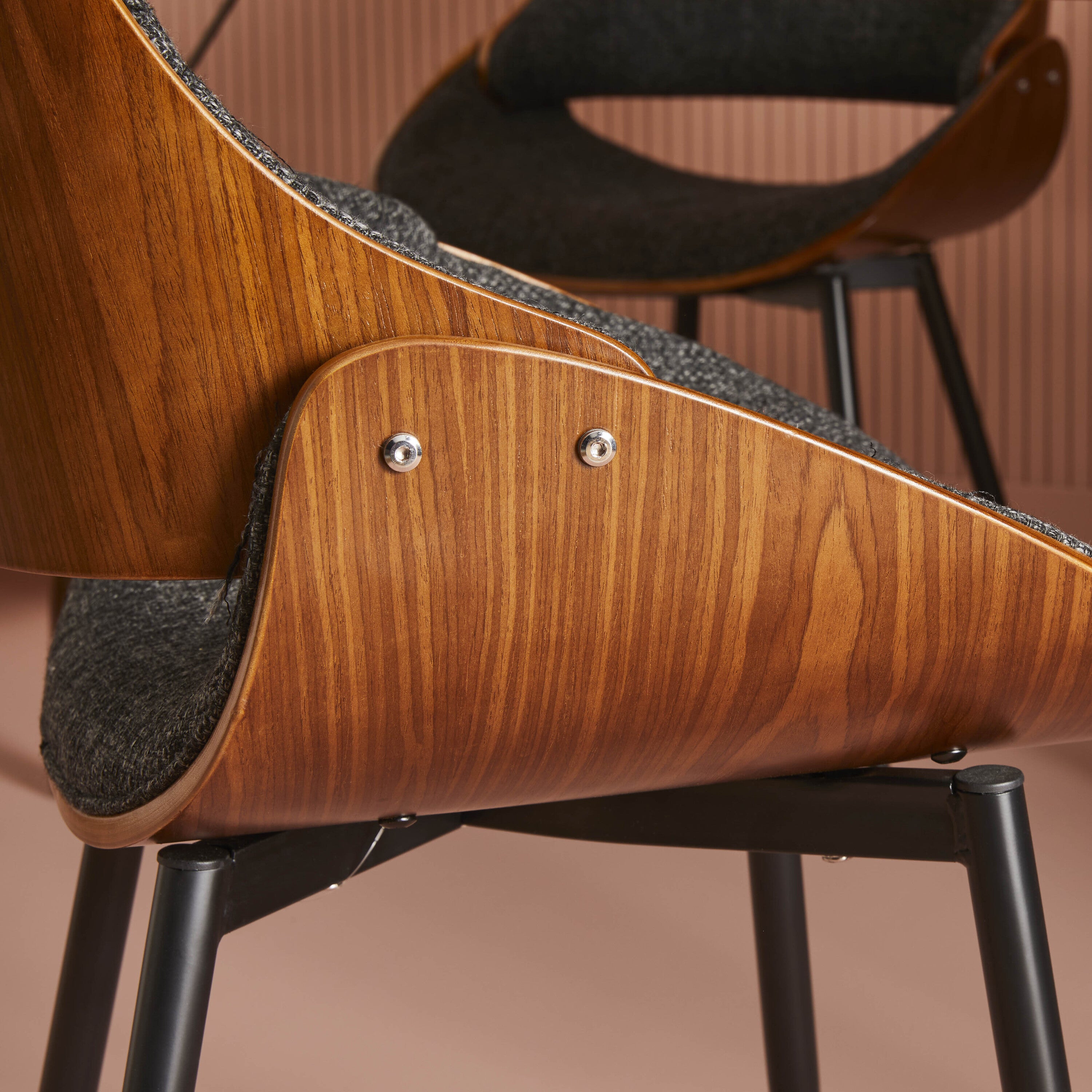 Voorzien van een uitgesproken neo-retrostijl, zal onze grijze stoffen stoel Mannix opvallen in het interieur van uw huis. De Mannix-stoel kan zowel gebruikt worden als een bureaustoel / bijzetstoel of als eetkamerstoel om trots aan het hoofd van de tafel te staan. De zitting bestaat uit een walnoothouten schaal bedekt met een grijze polyester stof en gevuld met polyurethaanschuim voor optimaal comfort. De grijze stoffen Mannix-stoel wordt ondersteund door een zwart metalen onderstel dat de structuur van de stoel verfraait. Deze is ook verkrijgbaar met een zitting ugleuning in bruine stof. Kenmerken van de stoel: Zitting van walnoothoutfineer. Bekleding van fluwelen stof gevuld met 100% polyester polyurethaanschuim. Metalen buisframe. De zithoogte is 45 cm vanaf de grond. Samenstelling: 100% polyester stof & walnoothoutfineer & metaal. Afmetingen: L 56 cm x H 78 cm x D 53,5 cm. Signature, gevestigd in de buurt van Lille in Frankrijk, ontwerpt en heruitgeeft al meer dan 20 jaar meubels. De collectie biedt een ruime keuze aan meubels en decoratieve artikelen. De voorliefde voor echt vakmanschap en een eclectisch oog bieden een mix van originaliteit en authenticiteit. Ontdek een selectie van meubels gemaakt van hoogwaardige materialen.