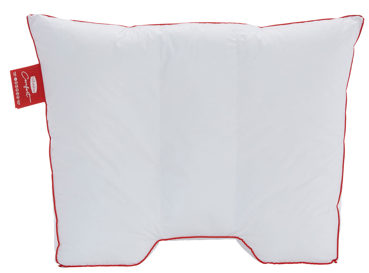 De Silvana Comfort Rood is de zachtste en dunste variant uit de Silvana Comfort collectie. Met name geschikt voor als je op een uiterst zacht matras of waterbed slaapt en kleiner dan gemiddeld van postuur bent. Tevens is deze rode uitvoering het beste alternatief voor de buikslaper. Deze slaaphouding wordt echter niet aangeraden, vanwege de spanning op de nekwervels. Het kussen is gevuld met Comforel® Soft. Dit zijn hoogwaardige en zeer zachte synthetische vezelbolletjes. De vulling is verdeeld over drie vakken. Het middenvak is iets zachter gevuld dan de zijvakken voor een perfecte positie van het hoofd in elke houding. Via de rits aan de bovenzijde is de vulling te doseren. De nekinkeping zorgt er bovendien voor dat het kussen het hoofd en de nek soepel volgt, zodat de nekwervels ontspannen liggen. De hoes van het kussen, oftewel tijk, is van 100% katoen en is behandeld met Sanitized®. Hierdoor is het kussen huisstofmijtwerend en geschikt voor mensen met een huisstofmijtallergie. Tevens maakt de Sanitized® behandeling het kussen schimmel- en bacteriewerend. De Silvana Comfort Rood is wasbaar op 60 graden Celsius. Was het kussen alleen indien noodzakelijk.