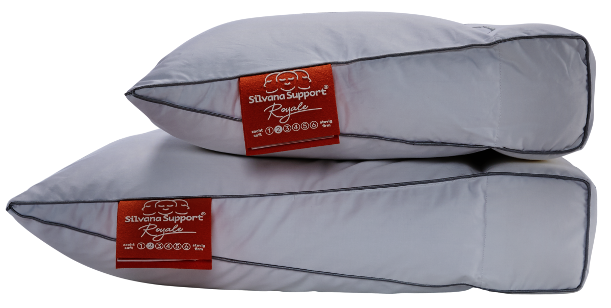 De heerlijk zachte en goed vochtregulerende tijk van bamboe/katoen zorgt samen met de hoogwaardige Suprelle® Fusion vulling en de neksteun voor ultiem slaapcomfort. Suprelle® Fusion is een zeer innovatief vulmateriaal bestaande uit 60% high-tech gerecyclede polyester vezels en 40% gerecycled dons. Deze milieuvriendelijke mix zorgt ervoor dat het kussen lang vormvast blijft, een verminderde warmteopbouw heeft en het vocht beter afgevoerd wordt wat weer zorgt voor een groter ademend vermogen van het kussen. De neksteun van de Silvana Support® Royale is gemaakt van Vita Talalay® latex. Deze hoogwaardige latex is soepeler en beter ventilerend dan gewone latex. De nekinkeping zorgt er bovendien voor dat het kussen het hoofd en de nek soepel volgt, zodat de nekwervels ontspannen liggen.