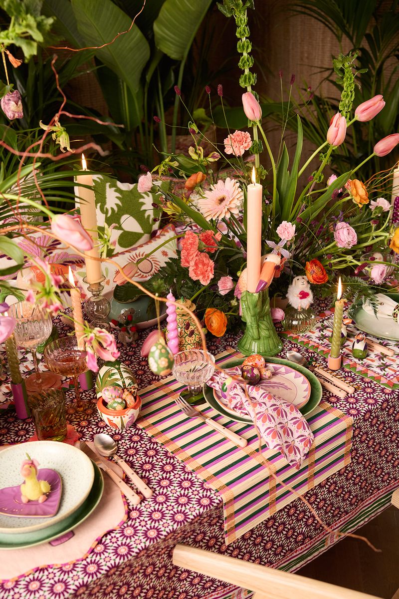 - Sissy-Boy Donkerpaars tafelkleed met bloemenprint (140x220 cm)