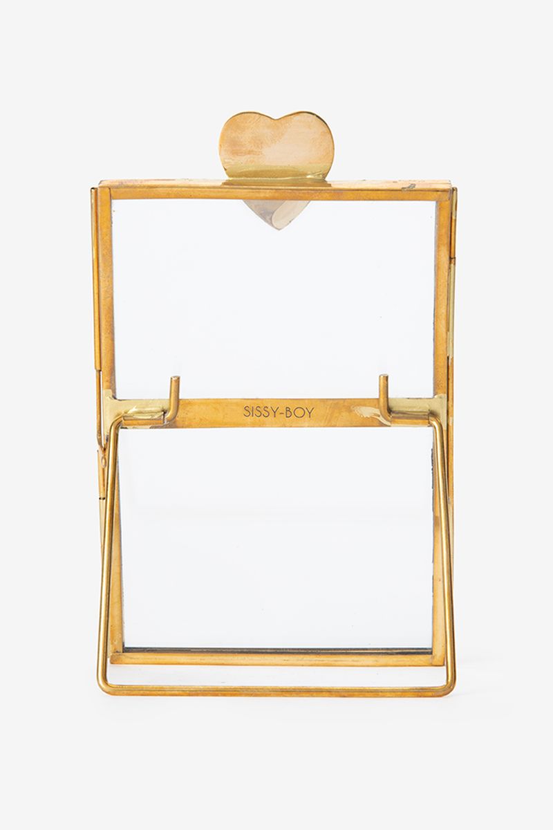 Goudkleurige fotolijst met hart van Sissy-Boy. Het fotolijstje is voorzien van een standaard, waardoor je het lijstje mooi rechtop kan zetten. De fotolijst heeft een afmeting van 11,5x18,5 cm en de foto die erin kan een afmeting van 10x15 cm. Materiaal: brass en glas.