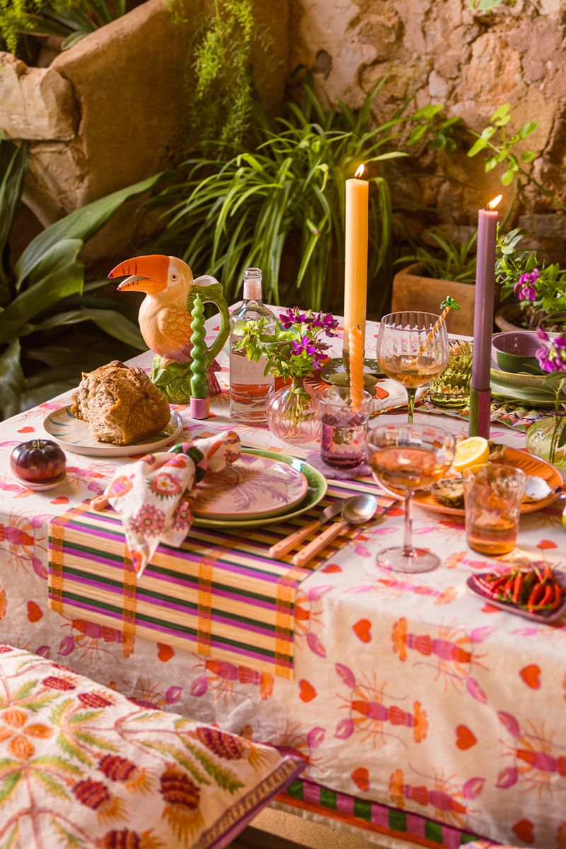 Sissy-Boy Roze tafelkleed met kreeftprint (140x220 cm)