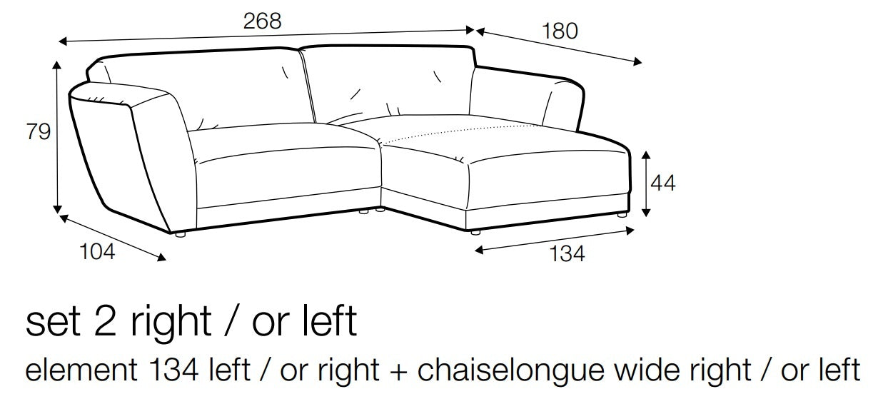 Sits Asta Wildflower 2-Zits Bank + Chaise Longue Links