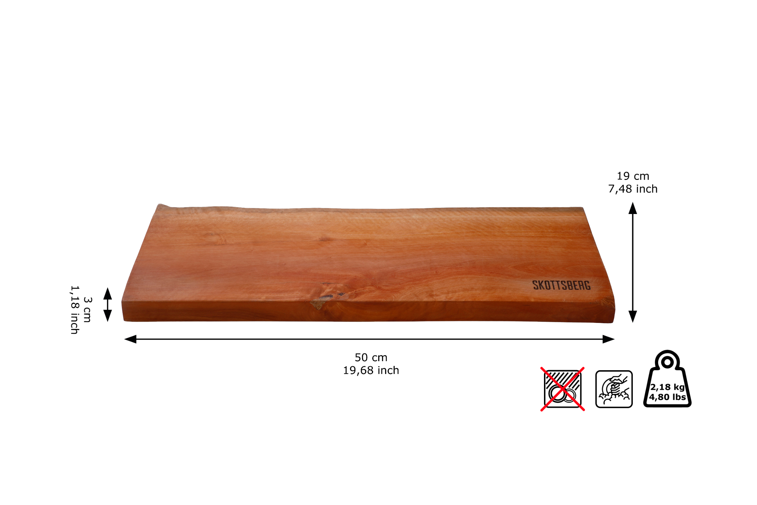Belangrijkste kenmerken: · Product: 1 serveerplank · Afmeting: 50 x 19 x 3 cm · Kleur: Bruin · Materiaal: Longan Wood (fruitboom) · Vaatwasmachinebestendig: Nee Over Skottsberg® Bij Skottsberg geloven we dat een pan geen wegwerpartikel is, maar een vriend waarmee je nieuwe avonturen gaat beleven en waarmee je geniet van het leven. Wij willen dat jouw Skottsberg net zo bij je past als je favoriete afgetrapte sneakers. Een Skottsberg is persoonlijk, een pan waarvoor een pan bedoeld is: het bereiden van je favoriete gerechten. Of je hem nu op open vuur, in de oven of op een fornuis gebruikt. En of je nu een expert bent of voor het eerst gaat bakken en braden: er is een Skottsberg voor elke kok.