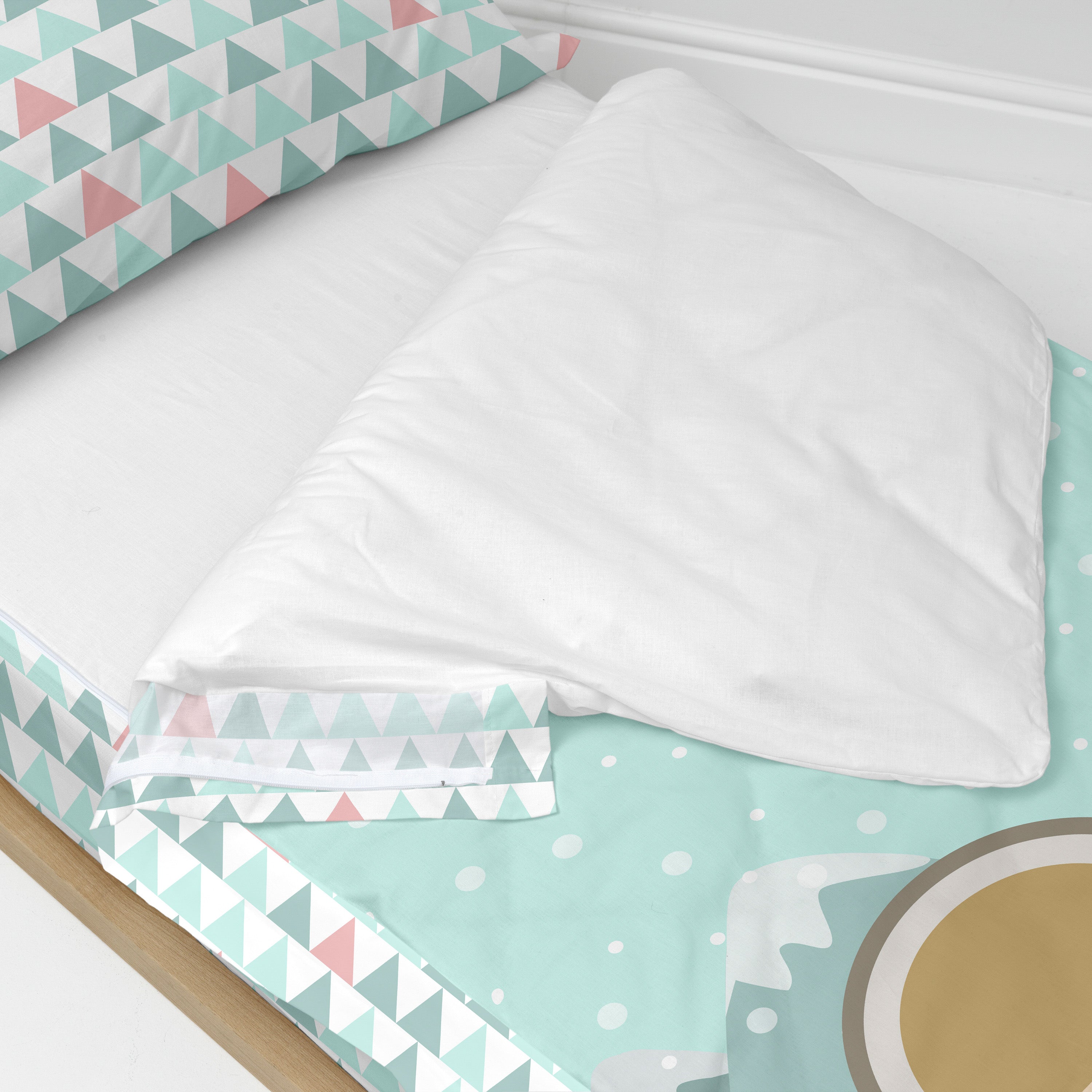 Het Skymo Day dekbedovertrek uit de Happynois collectie combineert een schattige illustratie van ijsvissen op de Noordpool met levendige grafische prints om de kamer van je kind op een verfrissende en leuke manier te decoreren. Het 100% katoenen dekbedovertrek en hoeslaken zijn samengevoegd met een verborgen ritssluiting om te voorkomen dat je kind zich 's nachts blootgeeft.