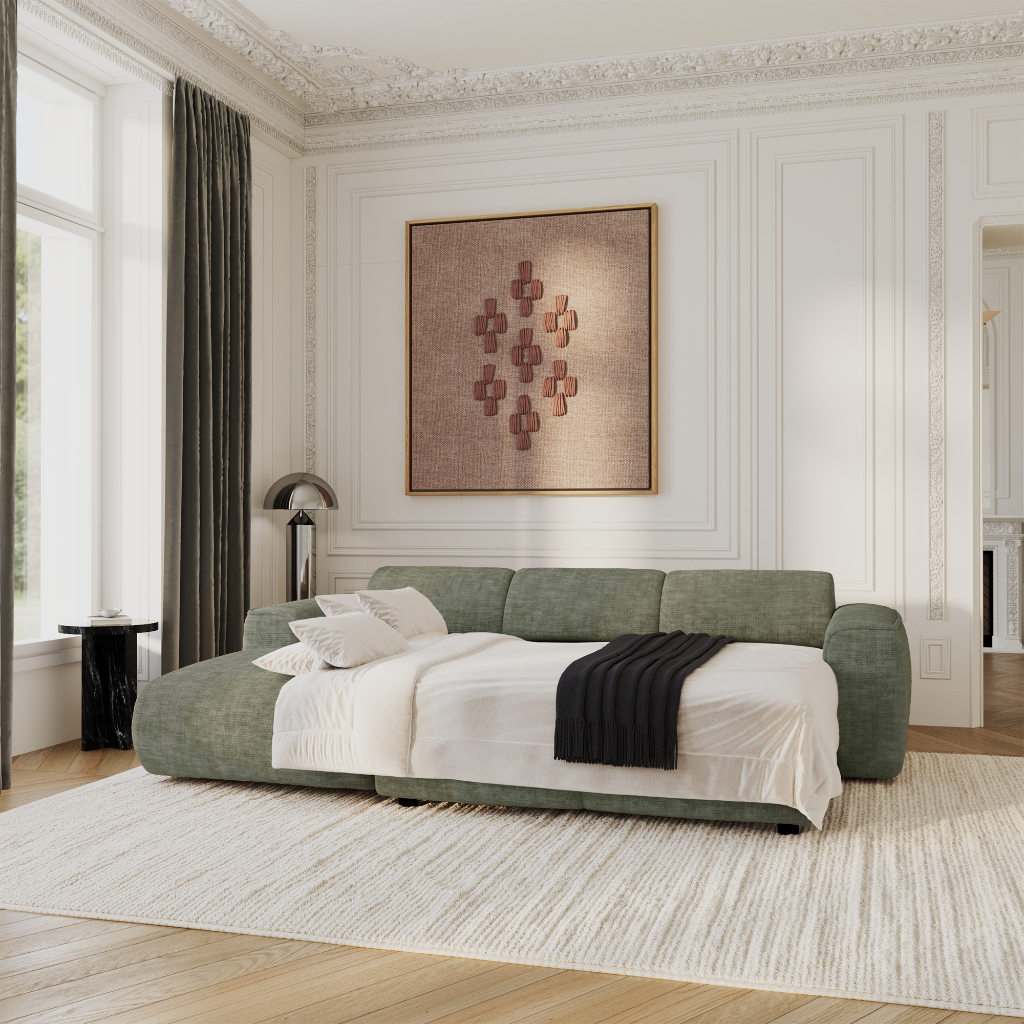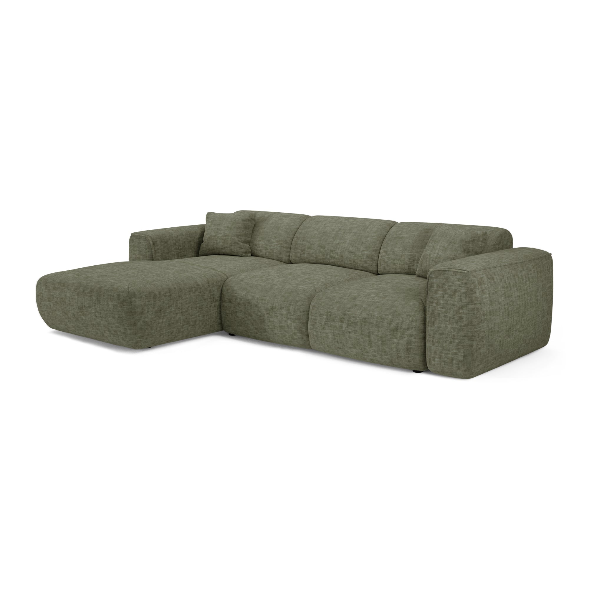 Slaapbank linkerhoek 5 zits saliegroen structuurfluweel