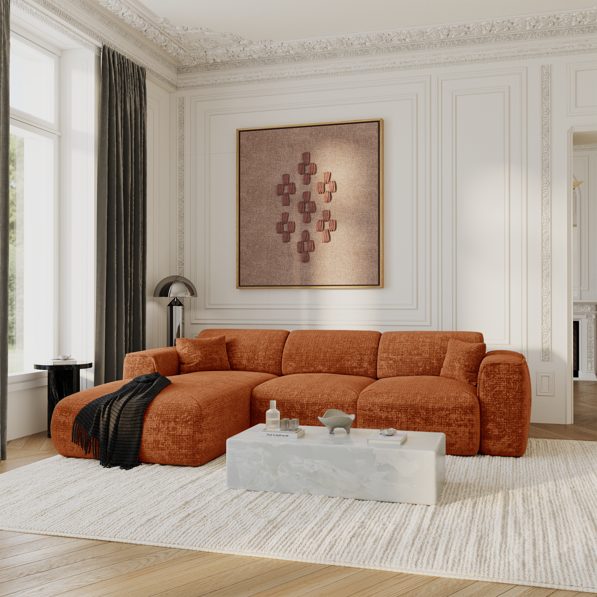 Slaapbank links hoek 5 zits terracotta reliëf fluweel