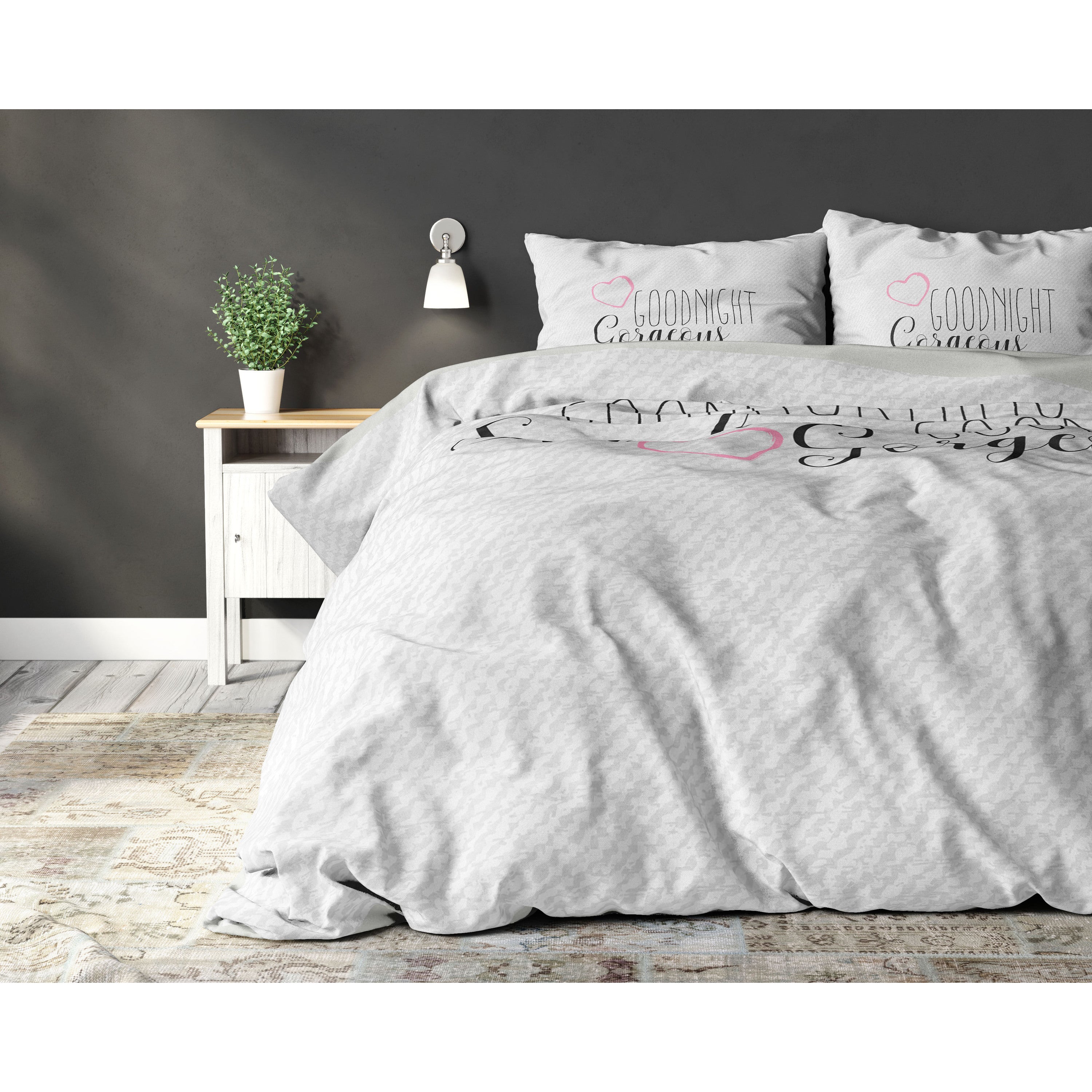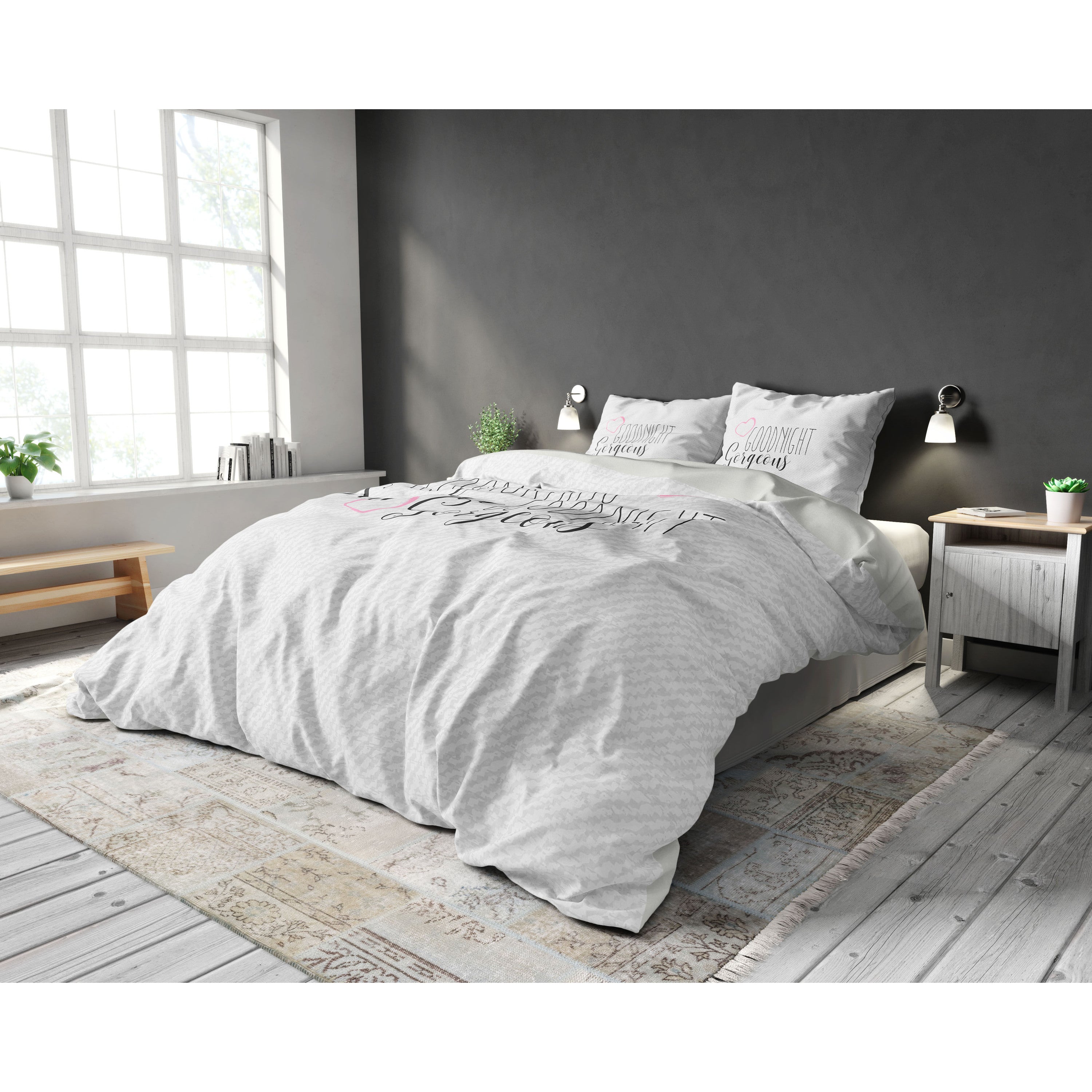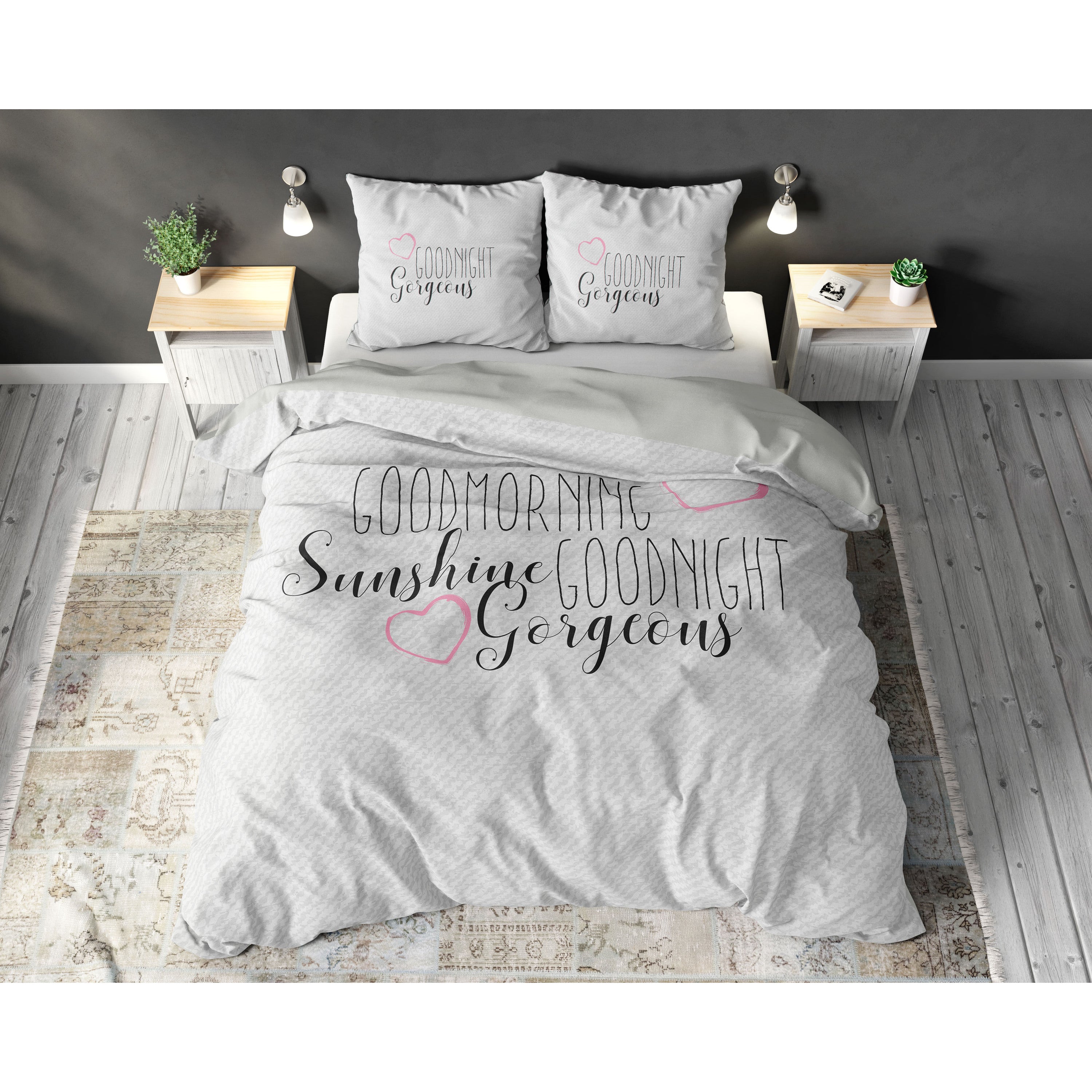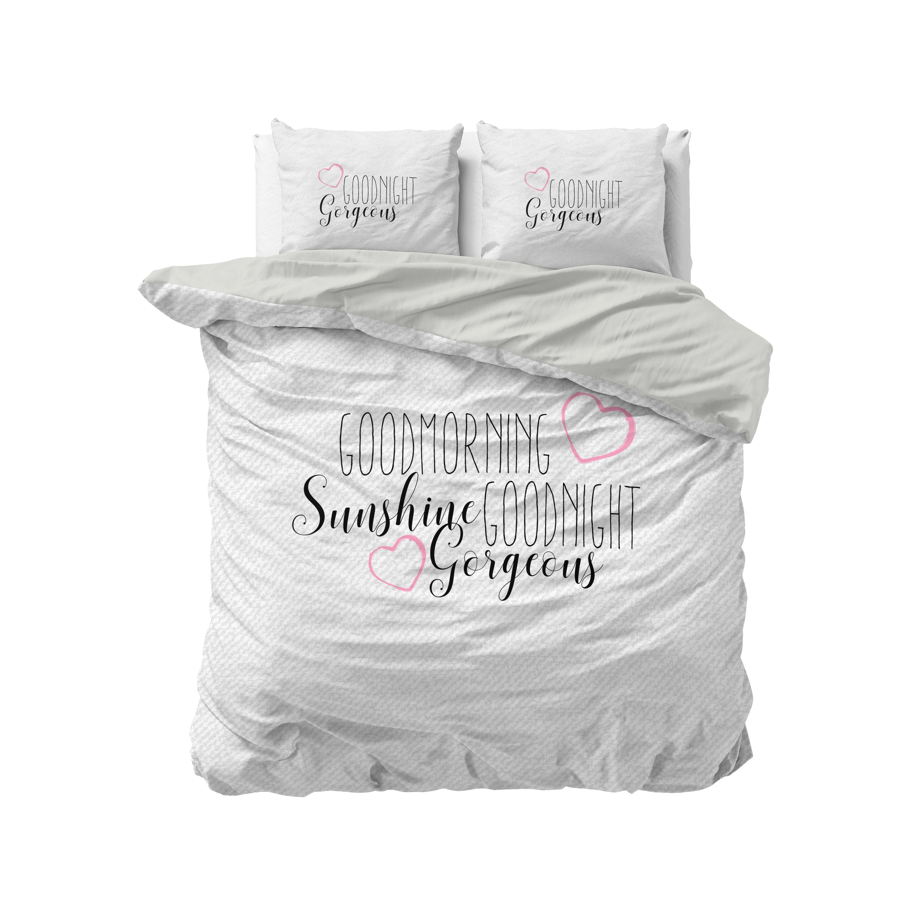 Verfraai je slaapkamer met dit trendy Sleeptime Morning Sunshine 2-dekbedovertrek! In het midden staat de romantische tekst 'Good Morning Sunshine, Good Morning Gorgeous'. Door de neutrale kleurstelling past het overtrek goed bij verschillende woonstijlen. Combineer dit Sleeptime Morning Sunshine 2-dekbedovertrek makkelijk met overige slaapkameraccessoires. Denk maar aan mooie gordijnen, sierkussens of een mat in dezelfde kleur.