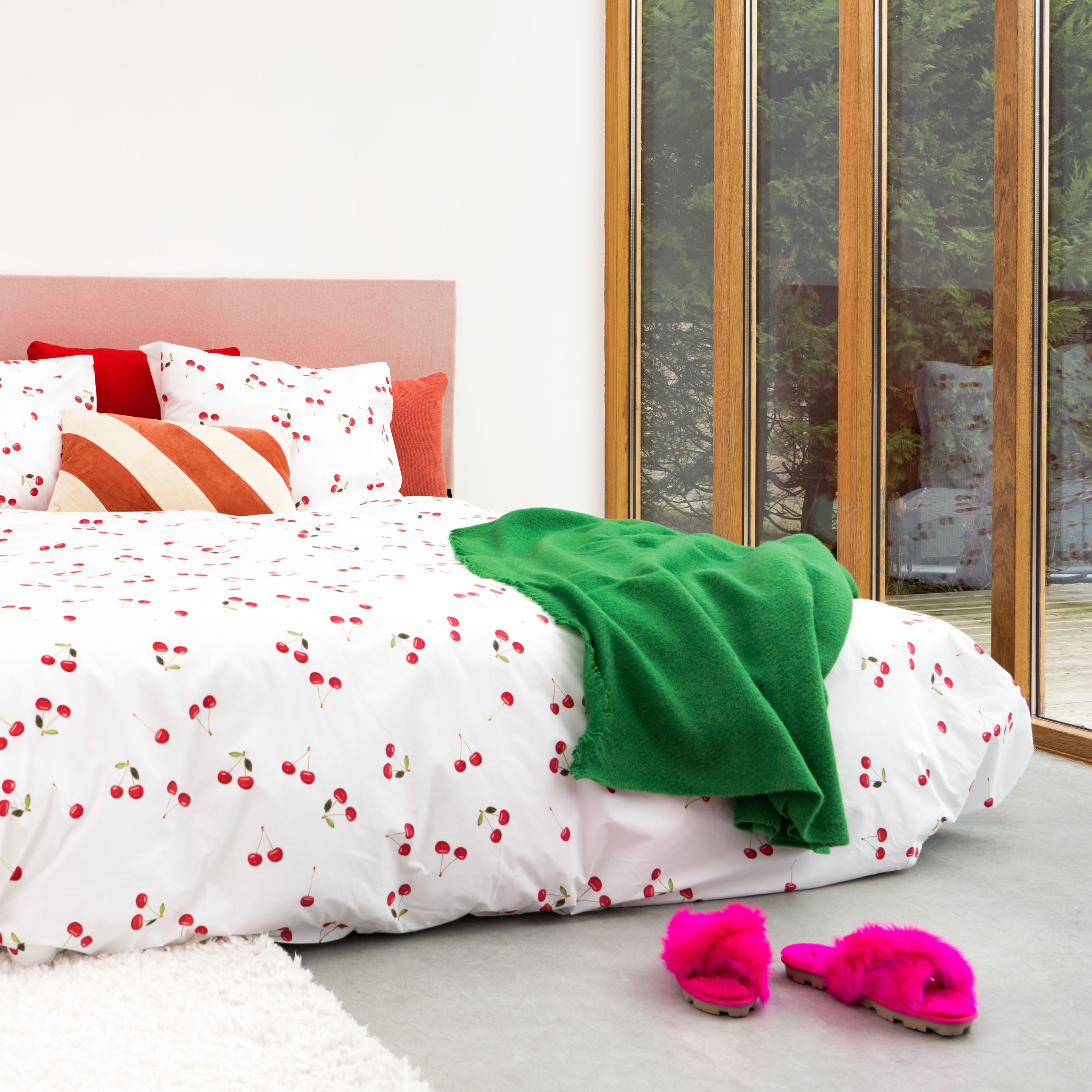 Waarom dekbedovertrek Cherries? Door het gebruik van biologisch katoen komt de prachtige print van het Cherries dekbedovertrek nog beter tot zijn recht. Afhankelijk van de maat wordt het overtrek geleverd met een of twee bijpassende kussenslopen. Handig: door de doorlopende instopstrook maak je het bed eenvoudig op en blijft je dekbed goed op zijn plaats!
