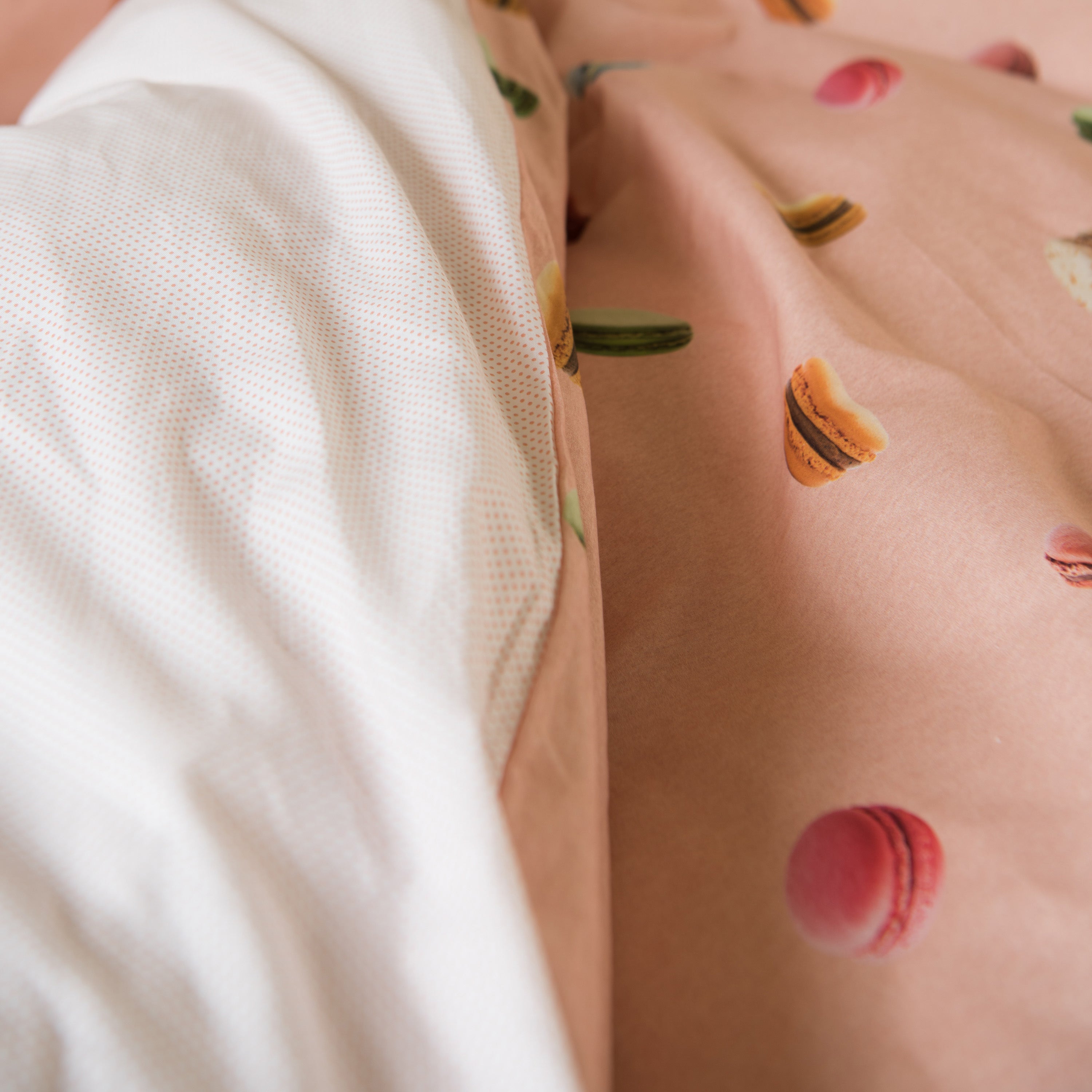 Waarom dekbedovertrek Macarons? Door het gebruik van biologisch katoen komt de prachtige print van het Macarons dekbedovertrek nog beter tot zijn recht. Afhankelijk van de maat wordt het overtrek geleverd met een of twee bijpassende kussenslopen. Handig: door de doorlopende instopstrook maak je het bed eenvoudig op en blijft je dekbed goed op zijn plaats!