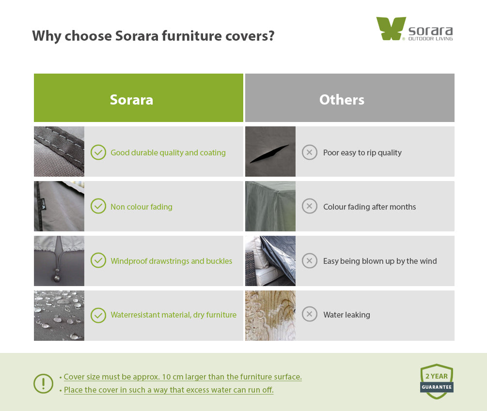- UV-BESCHERMEND | Uw kostbare meubilair blijft beschermt tegen UV-straling, maar na verloop van tijd is lichte verkleuring van de hoes mogelijk