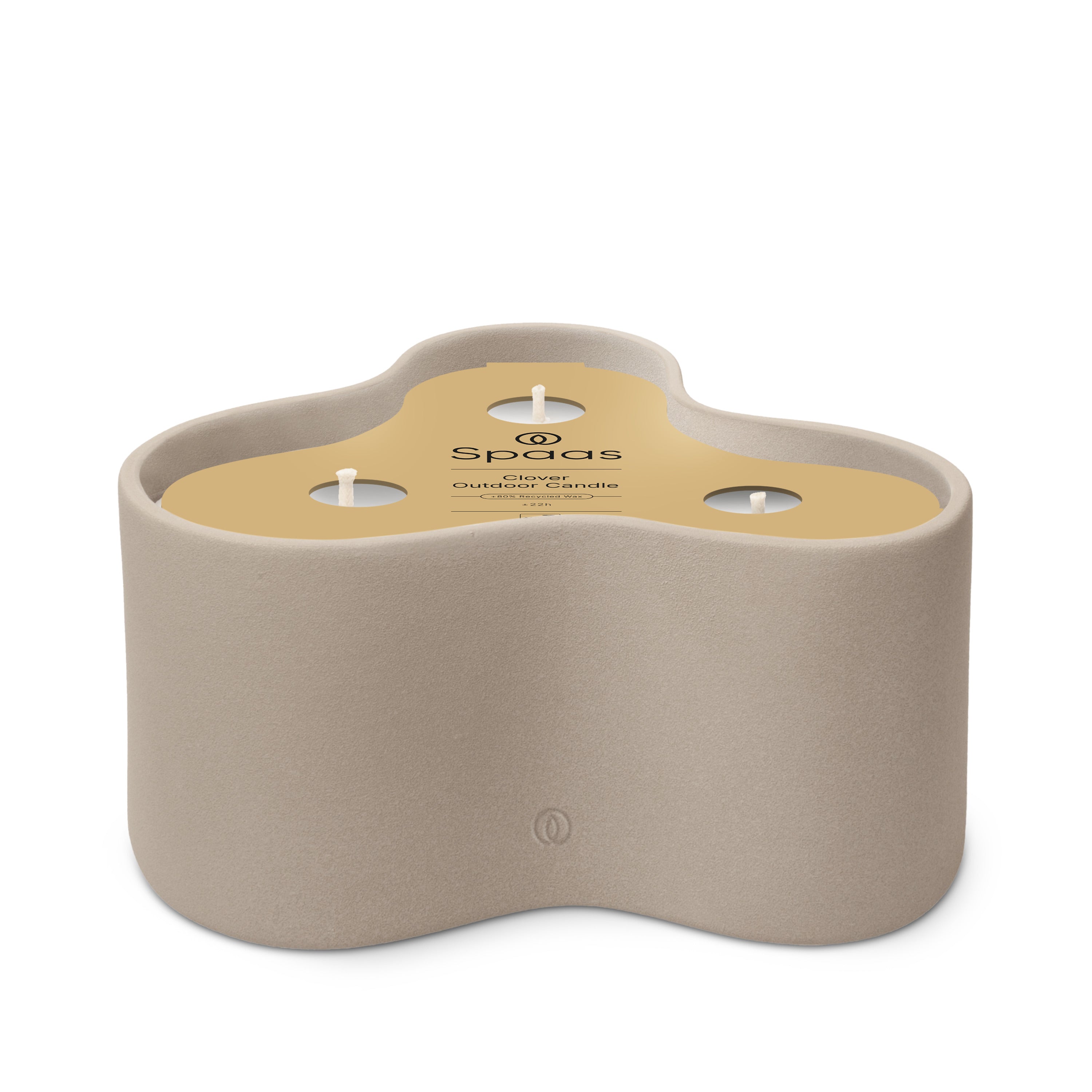 De Clover Candle is een perfecte mix van stedelijke texturen en industriële verfijning. Een buitenkaars met een speciale vorm, cementlook en drie stevige lonten, gevuld met +80% gerecycleerde was. Een unieke aanwinst voor je tuin om 's avonds samen te genieten.