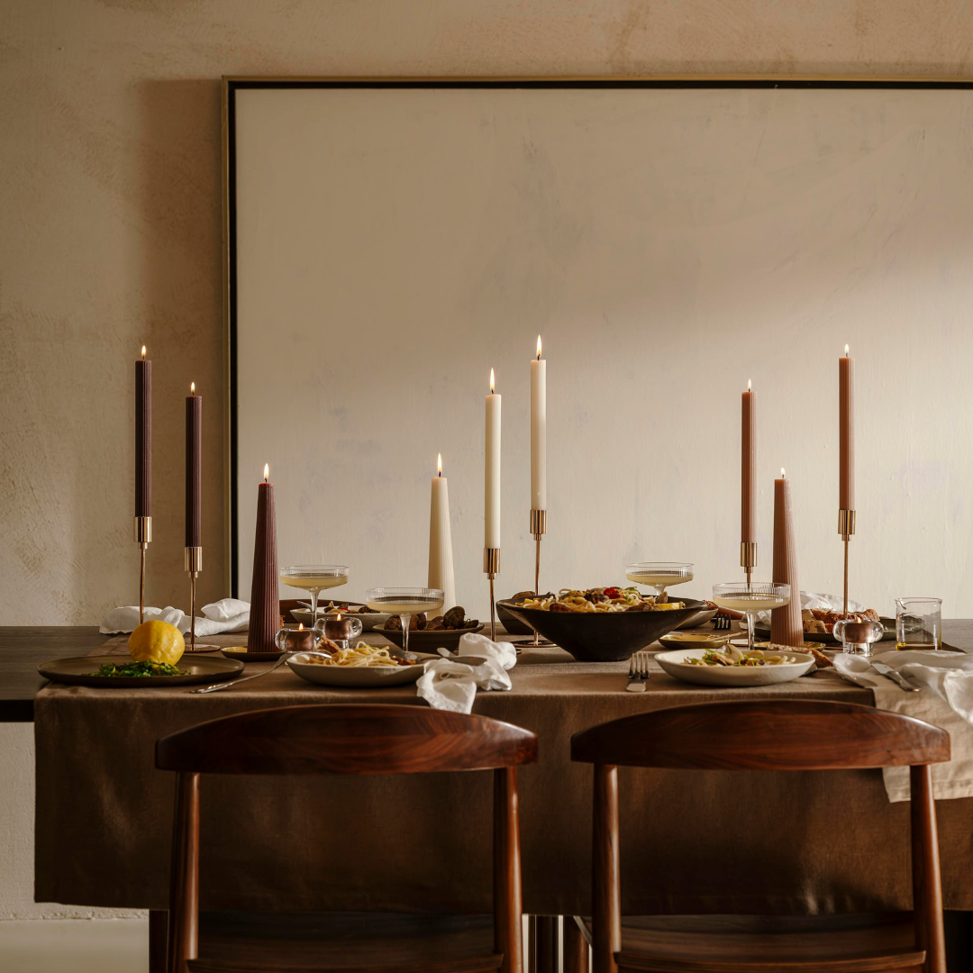 De Iconic Collectie van Spaas. Verbazingwekkende premium dinerkaarsen voor elk intiem moment en elke feestelijke gelegenheid. Met de subtiele maar kenmerkende geribde textuur breng je uitgebreide diners en gezellige brunches naar een hoger niveau. Gebruik ze in combinatie met de geribde dinerkaarsen in onze gouden kandelaars, voor het delen van fijne momenten en om in stijl te genieten van een digitale detox.