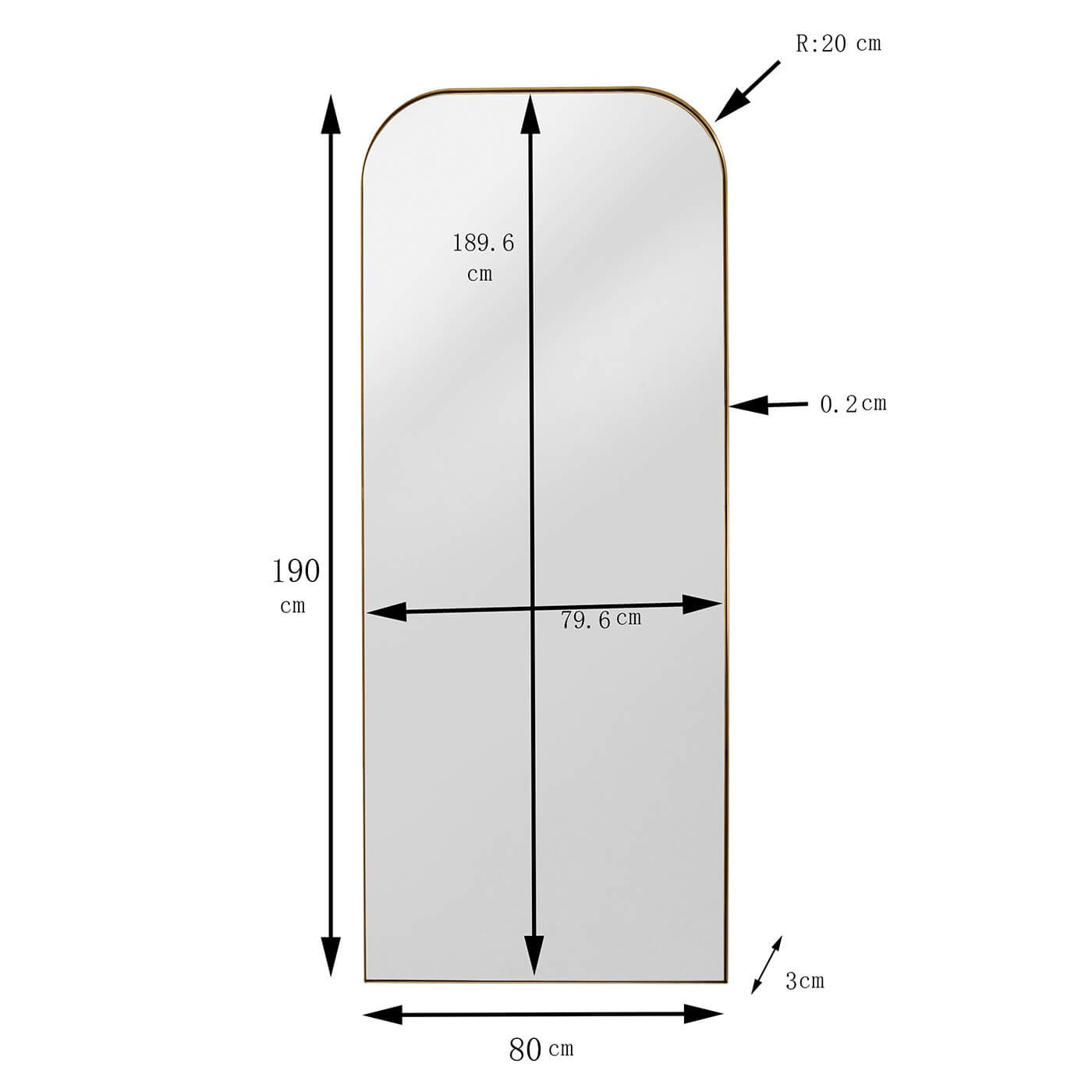 - Gouden metalen wandspiegel, 190 x 80 x 3 cm.