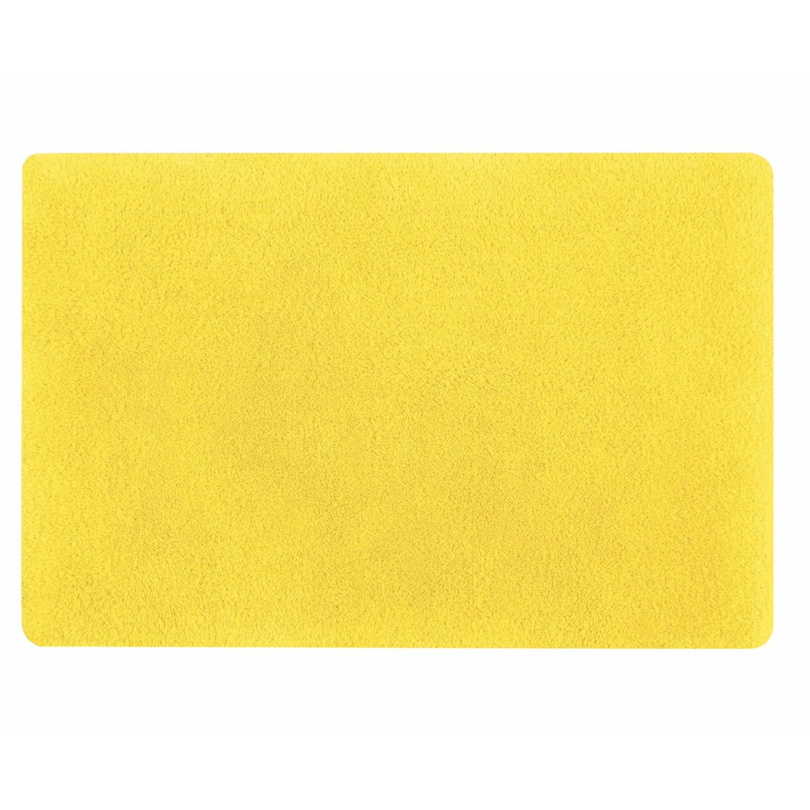 Badkamer vloerkleed/badmat/badkamermat/tapijtje voor op de vloer in de kleur geel met afmetingen van 50 x 80 cm in rechthoekige vorm. De badkamermat is gemaakt van polyester Supersoft Microfiber, hierdoor is de mat heel zacht en voelt dit lekker warm aan je voeten. De mat heeft een luxe moderne langharige vezel van 25 mm. Stevige kwaliteit matten/badkamerkleedjes voor op de vloer van uw badkamer.