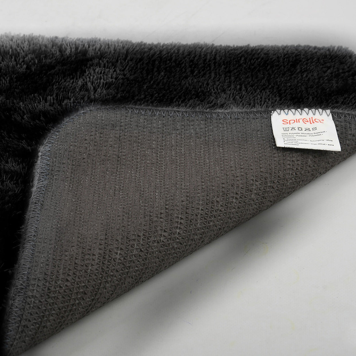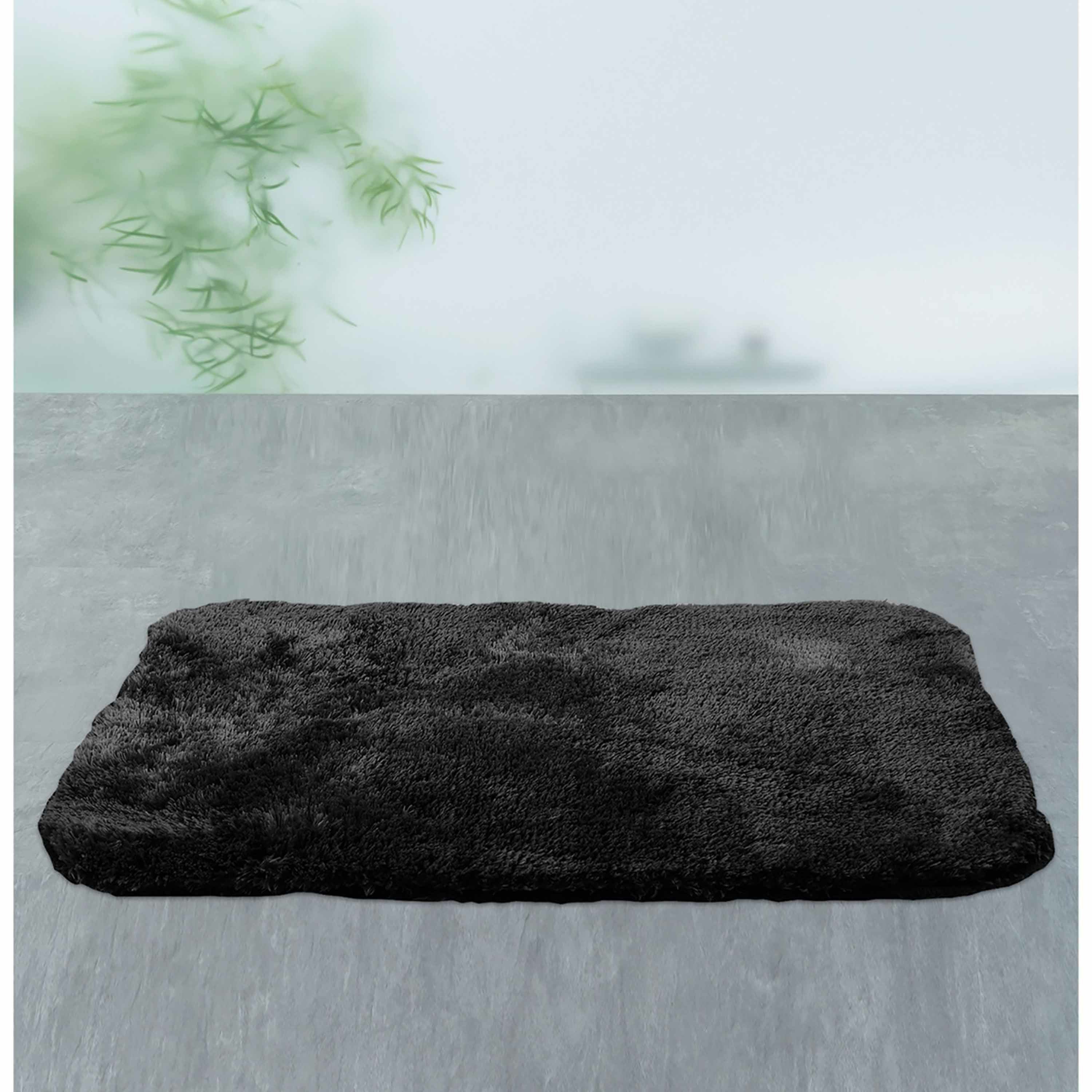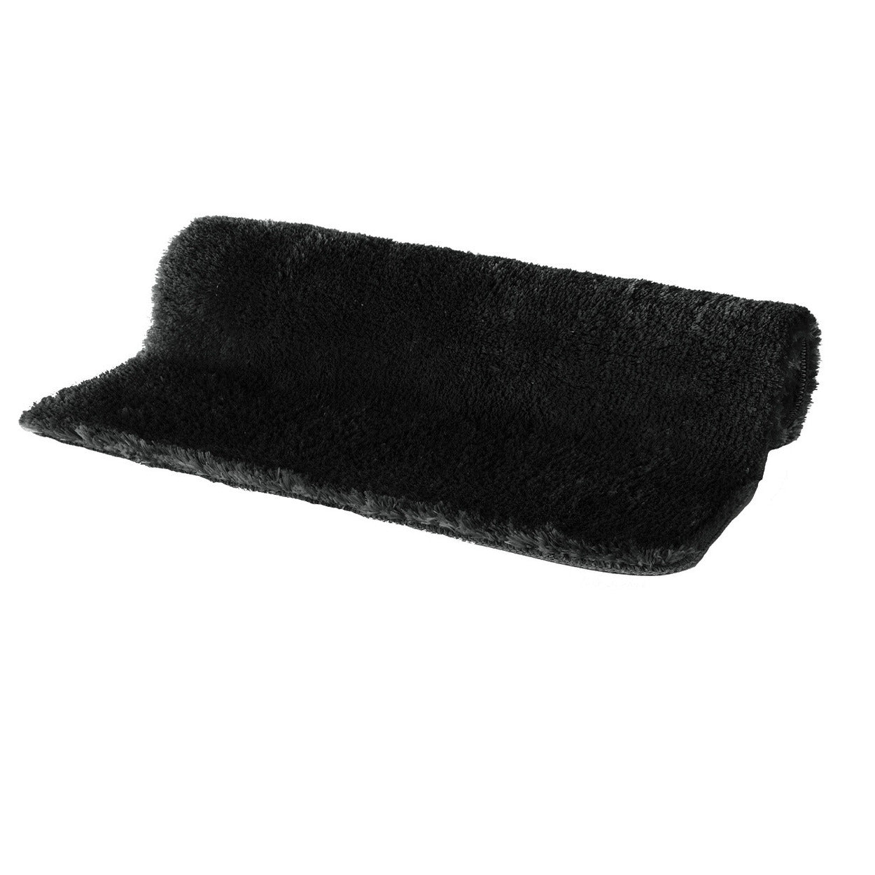 Badkamer vloerkleed/badmat/badkamermat/tapijtje voor op de vloer in de kleur zwart met afmetingen van 50 x 80 cm in rechthoekige vorm. De badkamermat is gemaakt van polyester Supersoft Microfiber, hierdoor is de mat heel zacht en voelt dit lekker warm aan je voeten. De mat heeft een luxe moderne langharige vezel van 25 mm. Stevige kwaliteit matten/badkamerkleedjes voor op de vloer van uw badkamer.