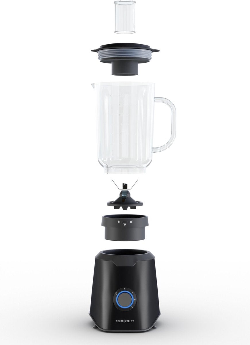 Deze blender is een must-have voor in jouw keuken! Bereid supergemakkelijk de lekkerste smoothies, milkshakes, koffies en meer! Deze krachtpatser heeft een vermogen van 1000W en is daardoor te gebruiken voor harde en zachte ingrediënten. Deze blender is gemakkelijk te bedienen vanwege de 3 verschillende snelheidsstanden en de handmatige pulsefunctie. Kies de stand die jou het beste resultaat brengt! De schenkkan van 1,5 liter is afneembaar en ook vaatwasserbestendig, super handig! De scherpe RVS messen met 6 vleugels zorgen ervoor dat jij snel een geweldig resultaat krijgt. Terwijl de StangVollby blender het werk verricht, houden de antislip nopjes het apparaat op zijn plek. Voordelen van de StangVollby blender