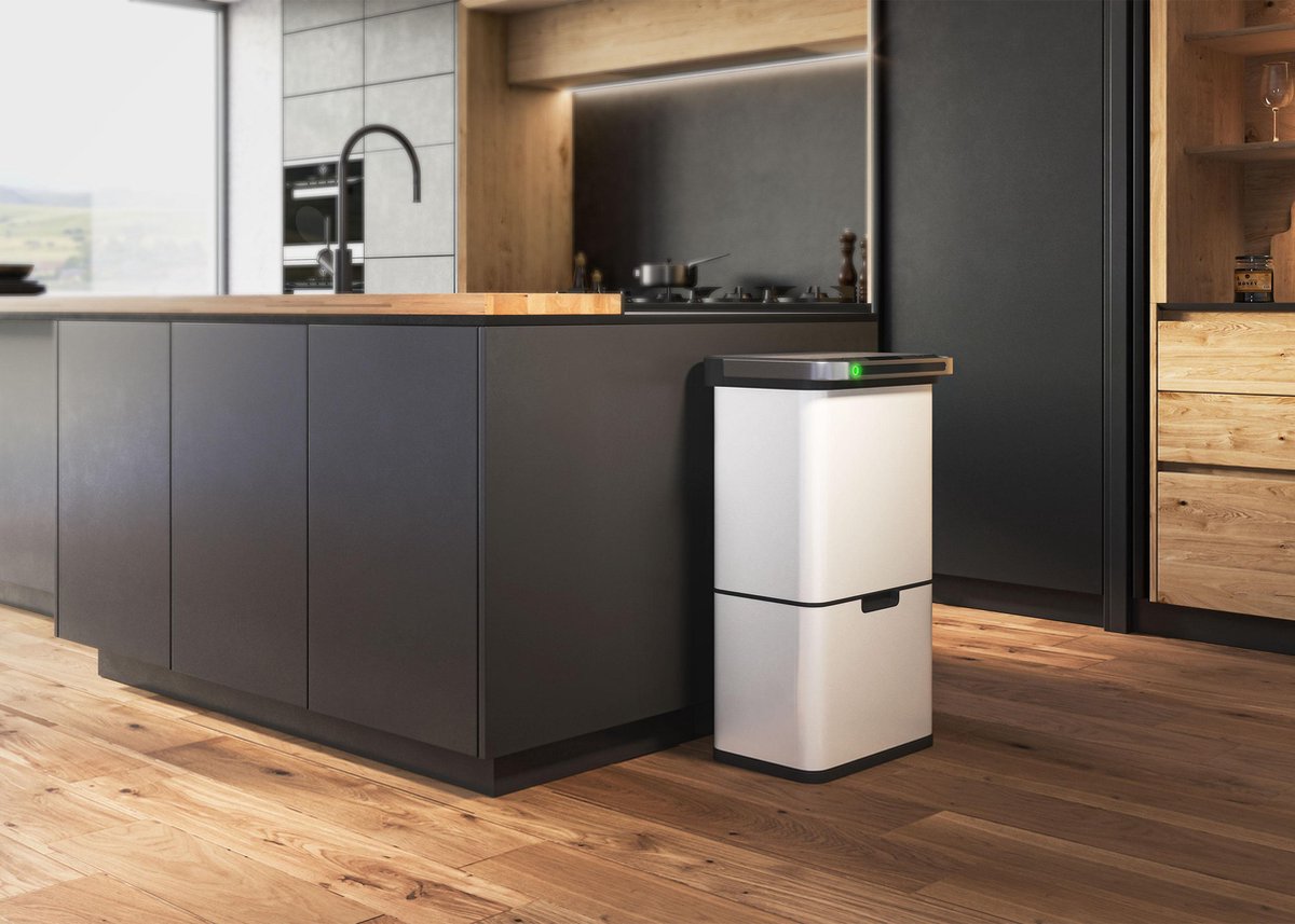 - PRAKTISCHE BEDIENING - Het is mogelijk om de bovenste twee compartimenten volledig contactloos te vullen. De sensor in de deksel opent automatisch zodra je in het bereik van 20 cm komt. Na 5 seconden sluit de deksel zich automatisch weer. De deksel is tevens handmatig te openen door een druk op de knop. De rolbare lade aan de onderzijde glijdt per handgreep naar voren en terug.