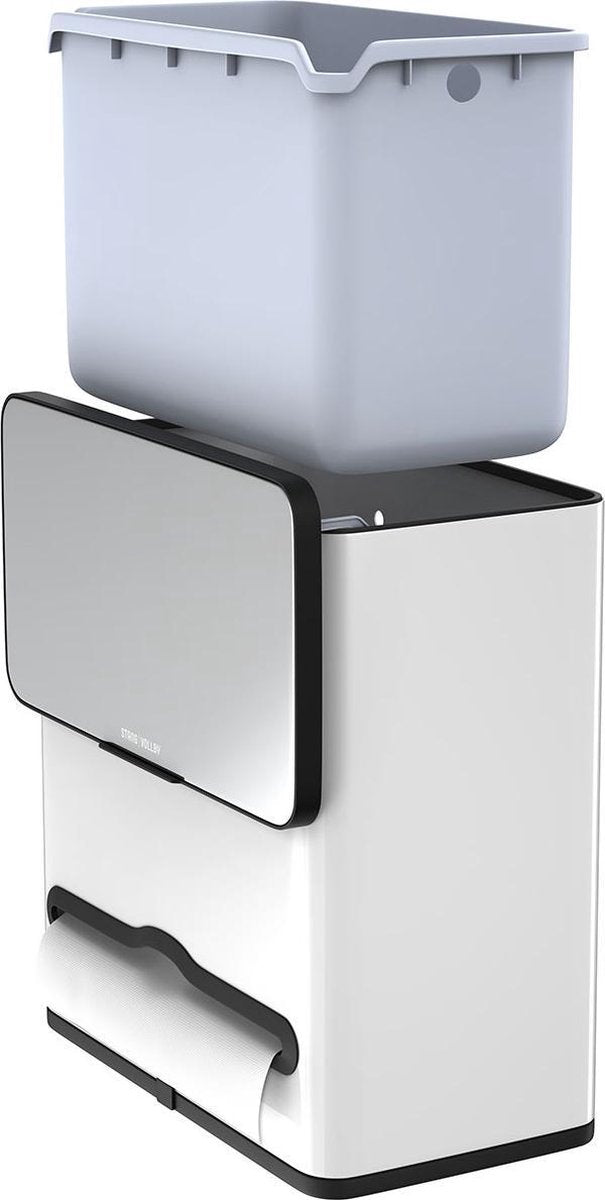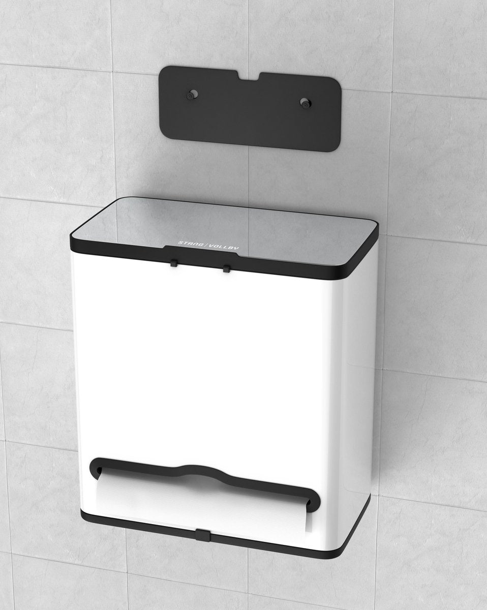 De Vallvik van Stangvollby is met een inhoud van 4 liter dé ideale prullenbak voor in kleine ruimtes. De praktische prullenbak is voorzien van een keukenrol dispenser en een 4 liter binnenbak. Ook is hij door de meegeleverde beugel en plakstrip gemakkelijk op te hangen in de keukenkast of aan de muur. De afvalemmer heeft een tijdloos design en is door zijn compactheid perfect voor in de keuken, badkamer en past op elk kantoor.