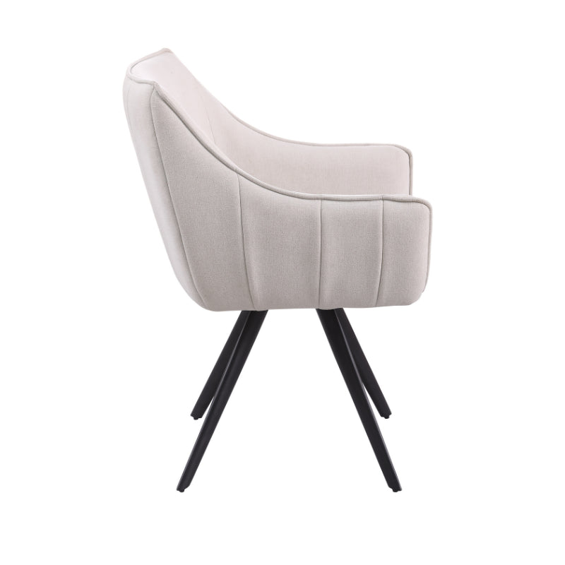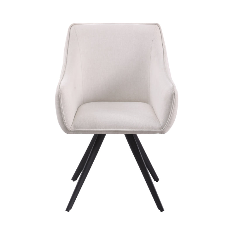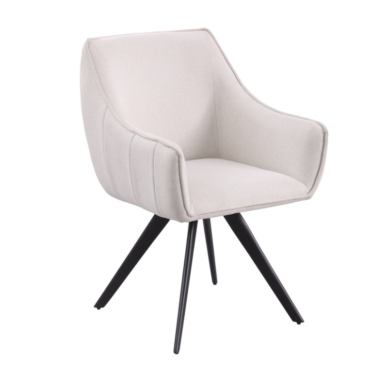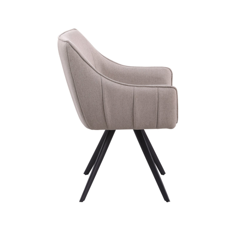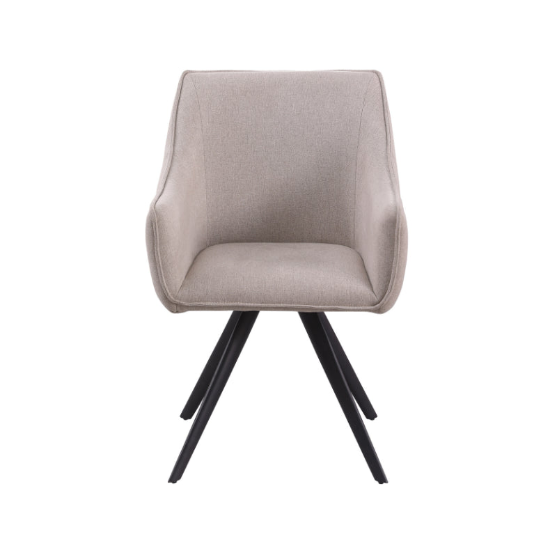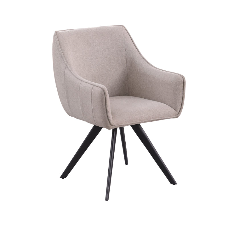 Eetkamerstoel Luca Sand is bekleed met de Nea-stof een geweven stof. De stoel is 180 graden draaibaar en heeft een return memory functie. De stoel is voorzien van een metalen zwarte poot.