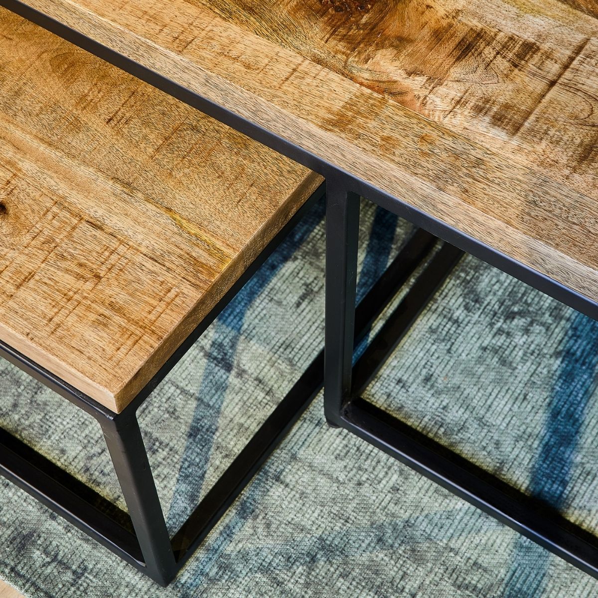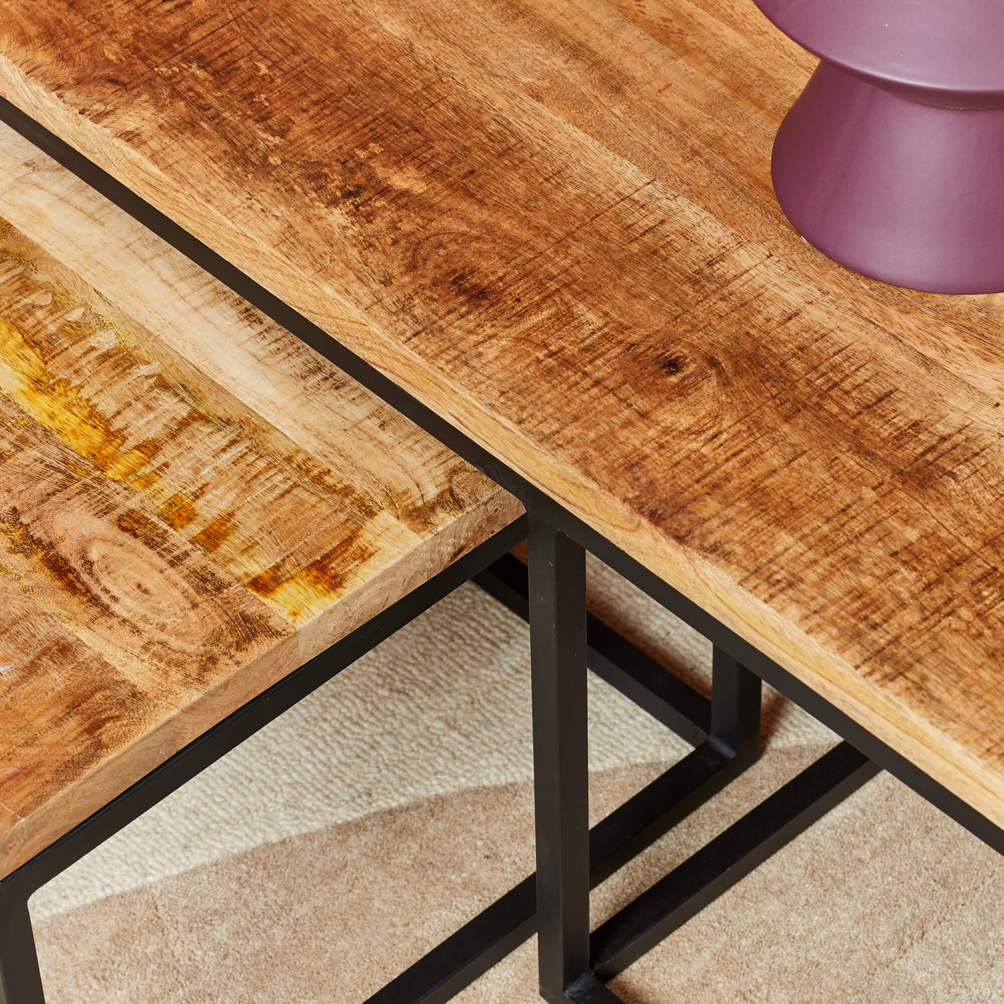 - De combinatie van het zwarte metaal en het mangohout zorgt voor industriële look