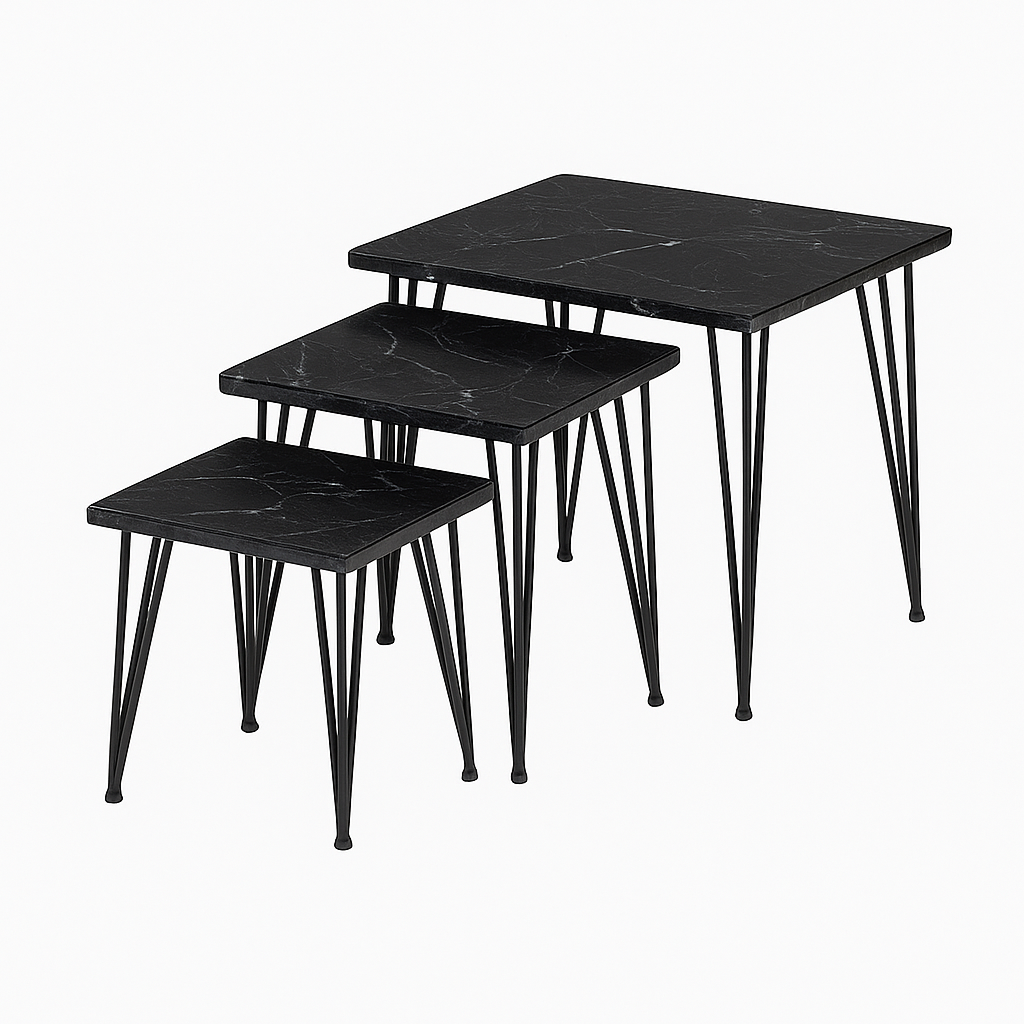 StarFurn Salontafel Set Jala Zwart Marmer 50cm
