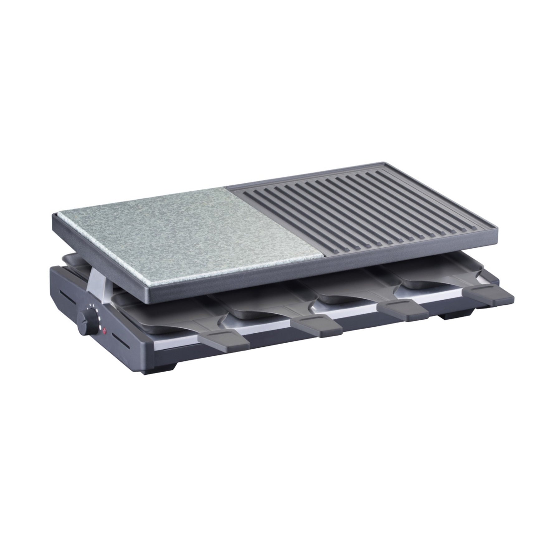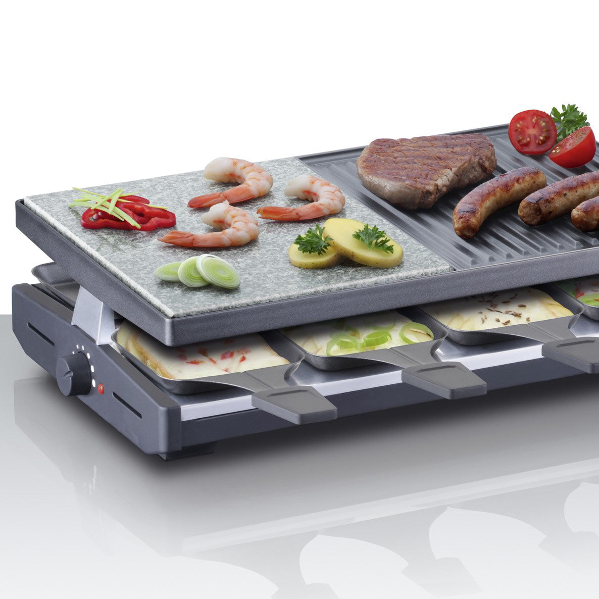 Met het hele gezin of vriendengroep samen aan tafel eten is erg leuk tijdens feestjes en feestdagen. Tegenwoordig heeft vrijwel elk huishouden wel een gourmetset of grillplaat. De Steba RC58 is multifunctioneel; het combineert drie functies in één apparaat. Zo kan er door iedereen aan tafel iets lekkers klaargemaakt worden, of het nu vlees, vis of groente is. Grillplaat en steengrill De bovenkant van de Steba RC58 bestaat uit twee delen. De ene kant is een grillplaat van natuursteen om heerlijk op te kunnen steengrillen. De andere kant is een aluminiumplaat van persgietwerk om vlees en vis op te kunnen grillen. De plaat is voorzien van een antiaanbaklaag. De afmetingen van het totale grilloppervlakte zijn 37 bij 23 centimeter. Gourmet Daarnaast worden er acht gourmetpannetjes meegeleverd om in te kunnen bakken. Zet de pannetjes op de onderste laag en maak bijvoorbeeld een omelet of rooster een broodje met wat gesmolten kaas er op. De pannetjes hebben een antiaanbaklaag en de handgrepen zijn voorzien van warmte-isolatie, waardoor ze altijd beet te pakken zijn ook als de inhoud warm is.