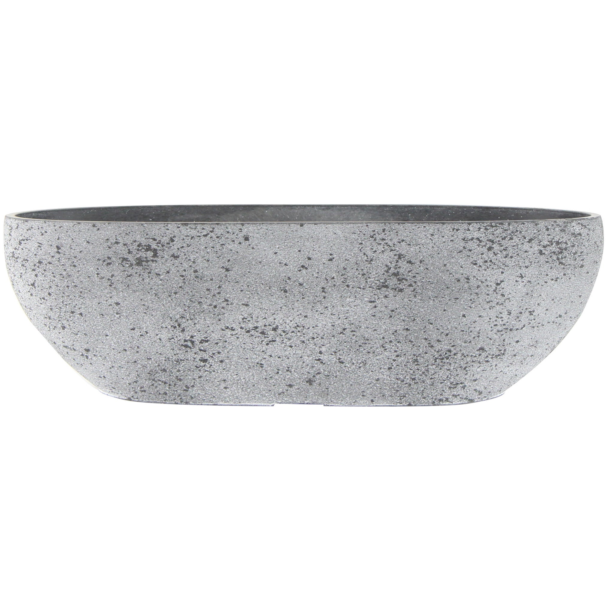 Bloempot/plantenpot balkonbak van gerecycled kunststof en steenpoeder in de kleur beton grijs met diameter 55 x 16 cm en hoogte 16 cm. Potten voor buitenplanten of kunstplanten. Deze plantenpot voor buiten heeft een stijlvolle uitstraling. Een unieke duurzame mix van materialen dat nu geen afval is, maar een prachtige duurzame bloempot. Een sterke, mooie pot die vriendelijk is voor het milieu en de portemonnee. De pot heeft gaatjes in de onderkant dus een opvangbalkonbak is voor binnen gebruik vereist. Zoeknaam serie voor de balkonbak is Nova concrete beton grijs. Deze serie potten hebben een eigen drainagesysteem onderin de pot.