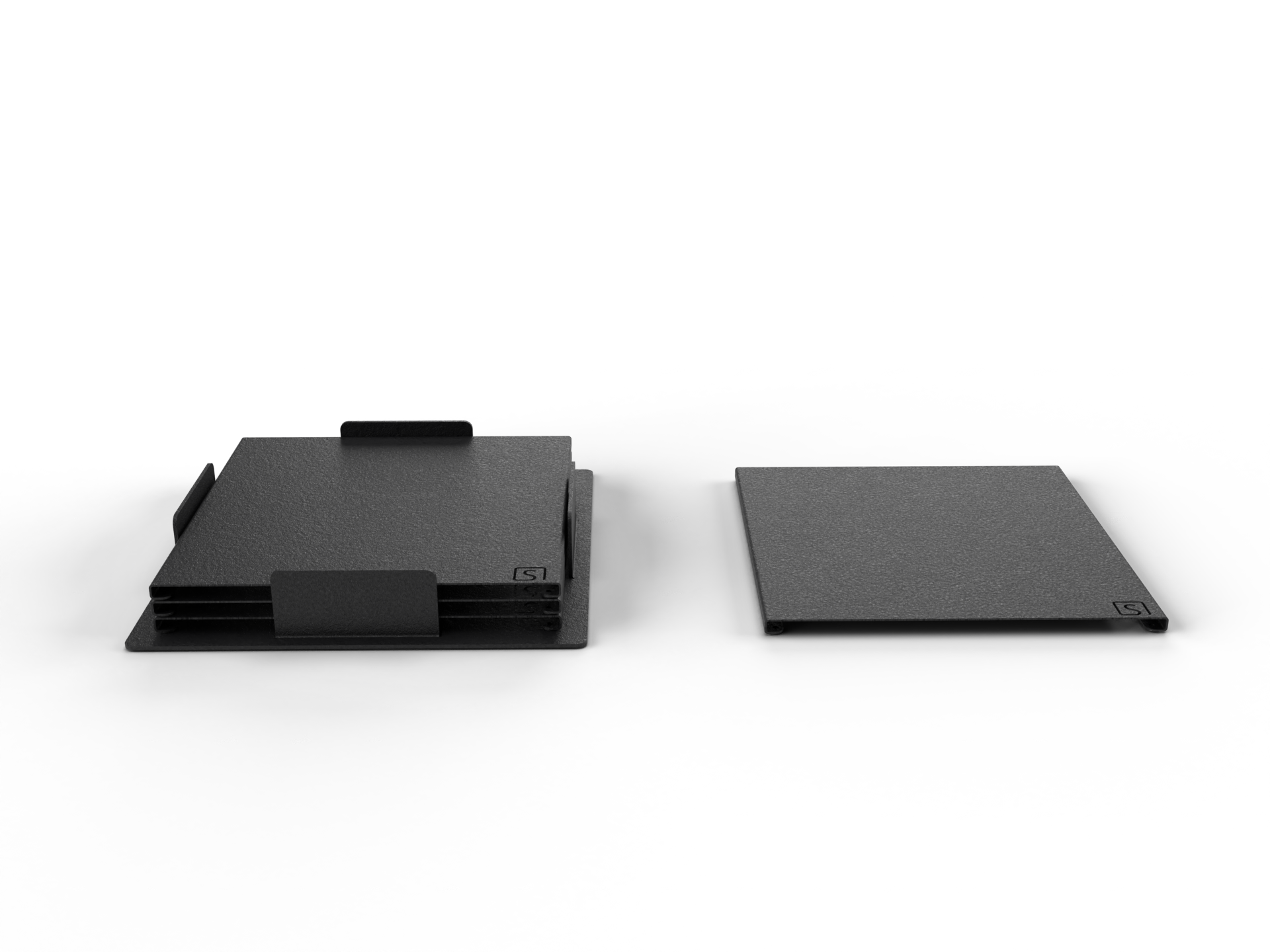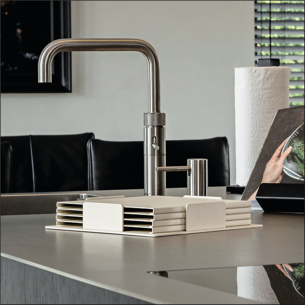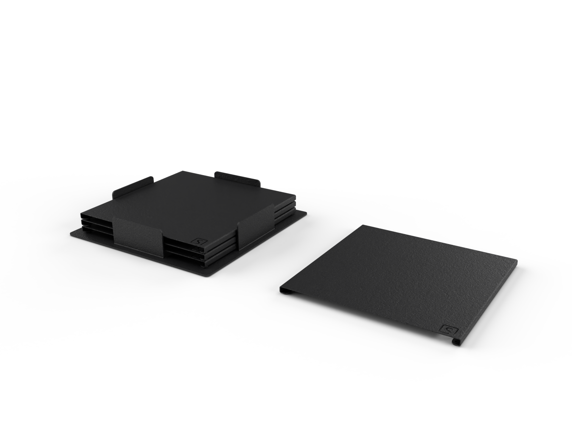 De set bestaat uit vier eenvoudig te reinigen onderzetters van hittebestendig staal met anti-kras noppen. Ze worden geleverd met een handige houder om ze stijlvol op te bergen.De Oni Onderzetter voor pannen is gemaakt uit één plaat van hoogwaardig staal met een poedercoating. Dit maakt de onderzetters en de houder duurzaam en makkelijk schoon te maken. De onderzetters zijn 20 × 20 × 1 cm. De totale set is 22 x 22 x 7 cm.Net als de beroemde artiesten hebben we ons eigen palet van kenmerkende kleuren samengesteld. De kleuren zijn zorgvuldig uitgekozen en zijn perfect te combineren. Ons unieke palet bestaat uit de volgende kleuren: • RAL 9005 - Gitzwart • RAL 1013 - Parelwit • RAL 8028 - Terrabruin • RAL 7030 – Steengrijs • RAL 3012 – Beige Rood Liever een andere kleur? Neem dan contact met ons op voor een van de vele mogelijkheden. Wij ontwerpen en produceren al onze producten met de grootste zorg zodat je zo lang mogelijk van onze producten kan genieten. Daarom geven wij op al onze producten drie jaar garantie.