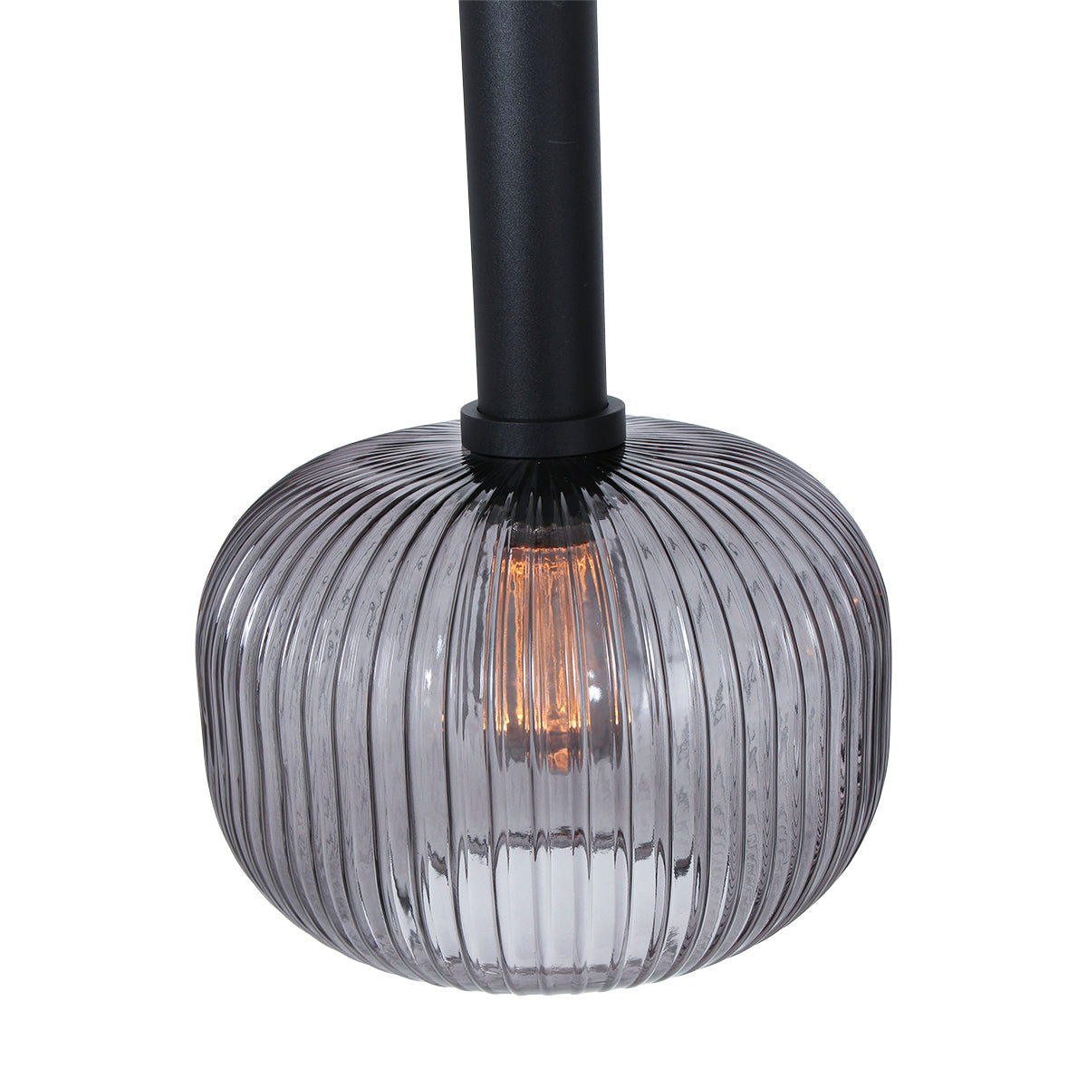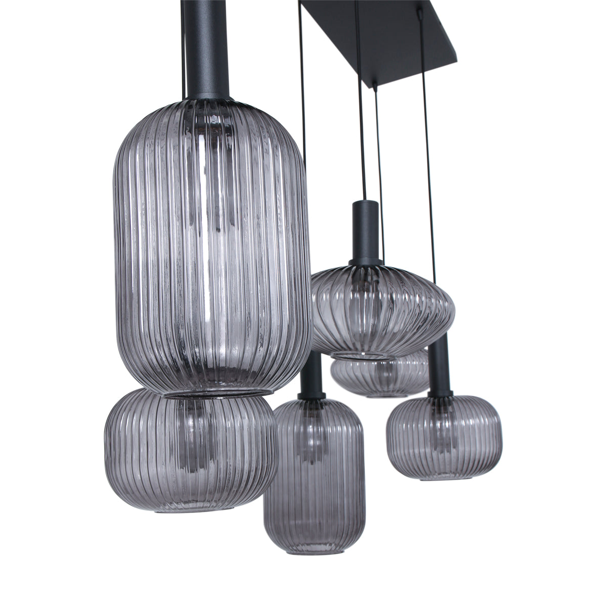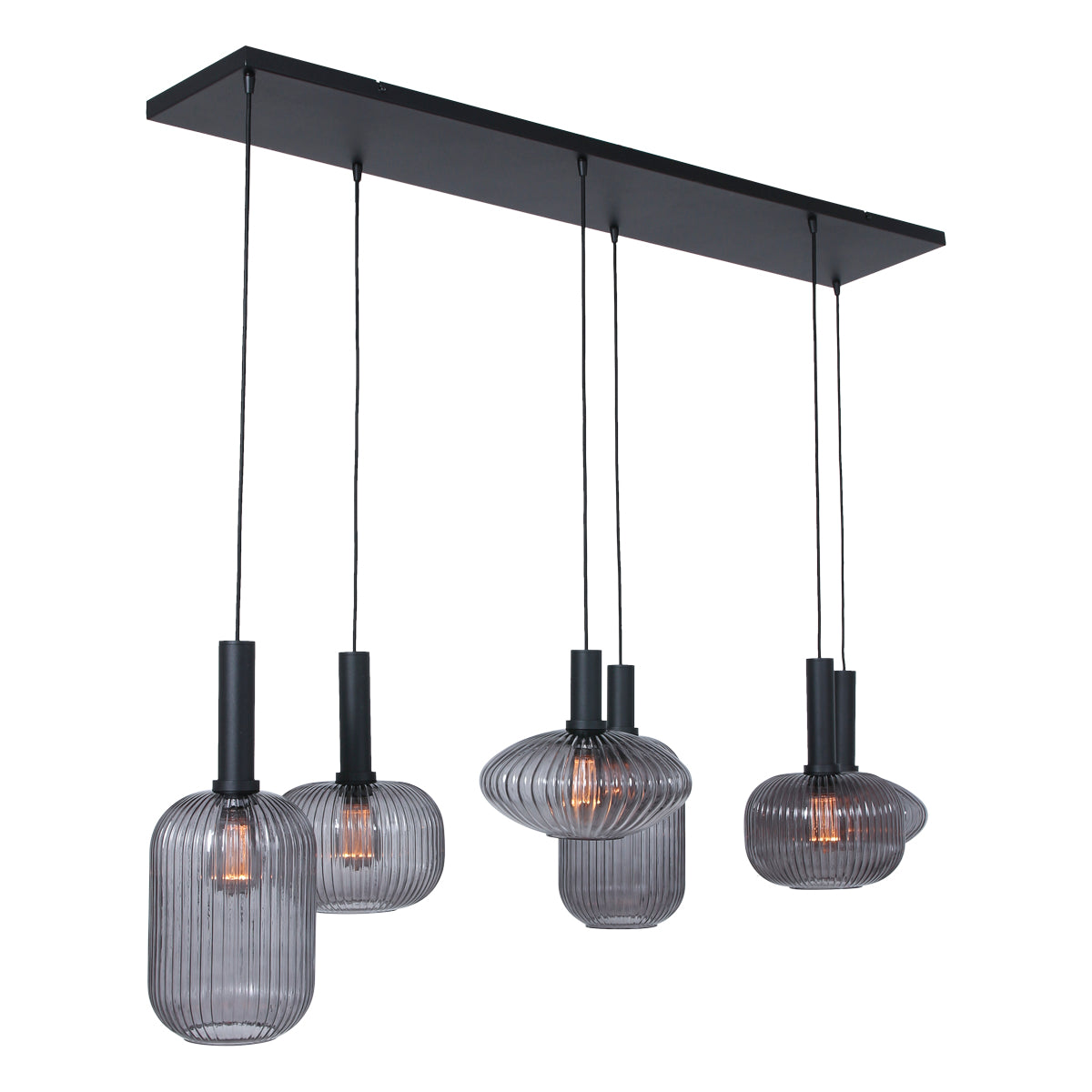 Steinhauer Danske hanglamp - zeslichts - rook glas - 140 cm breed - E27 - zwart