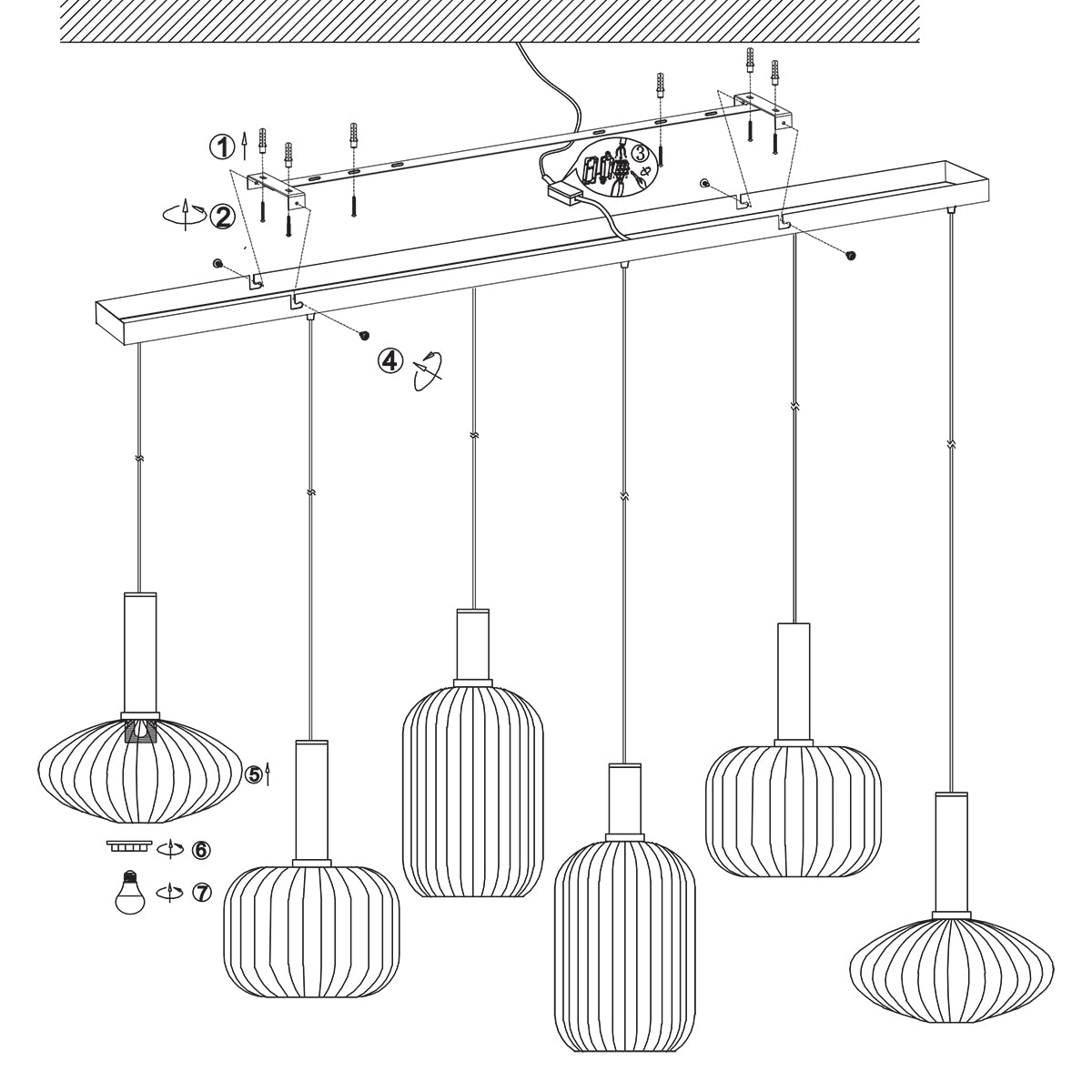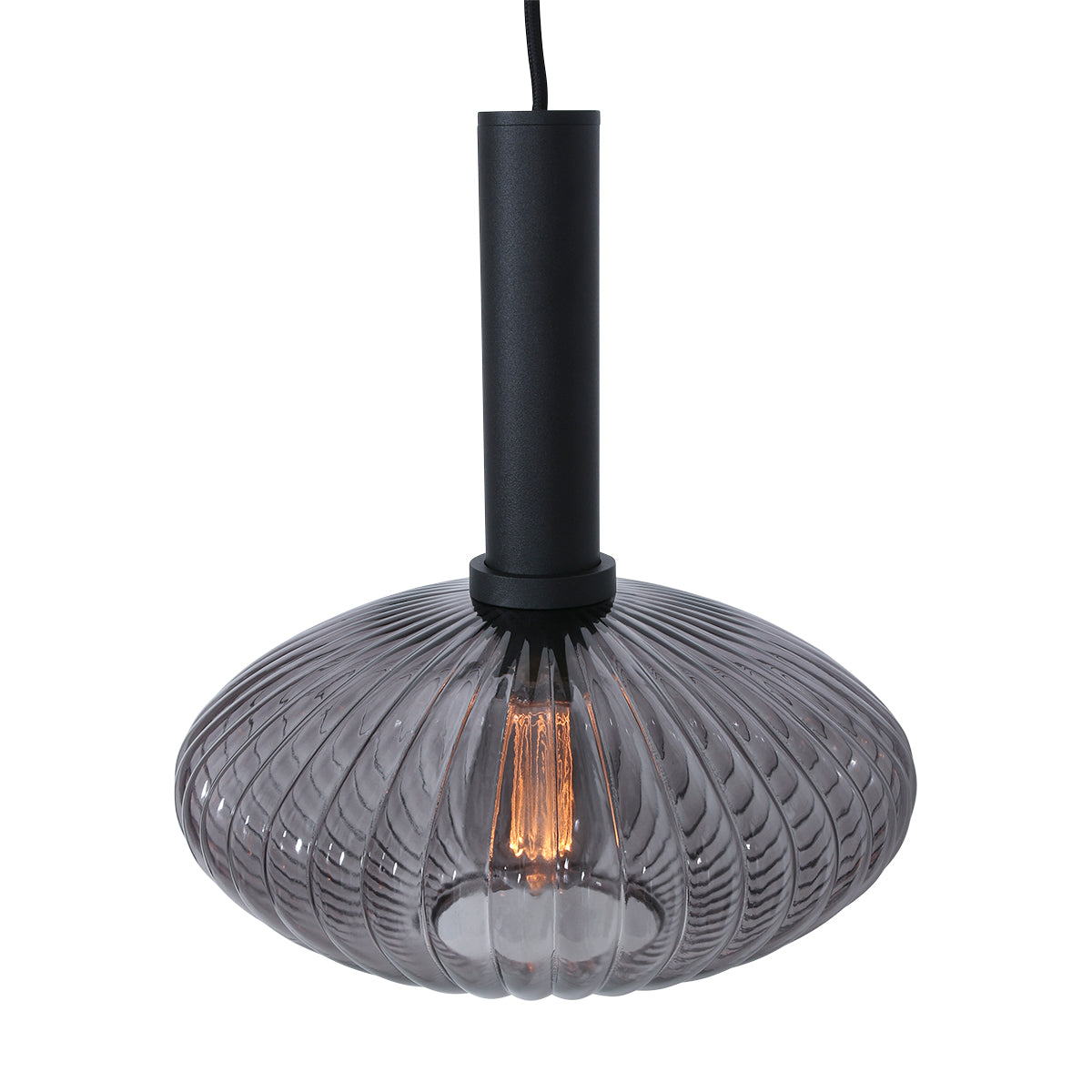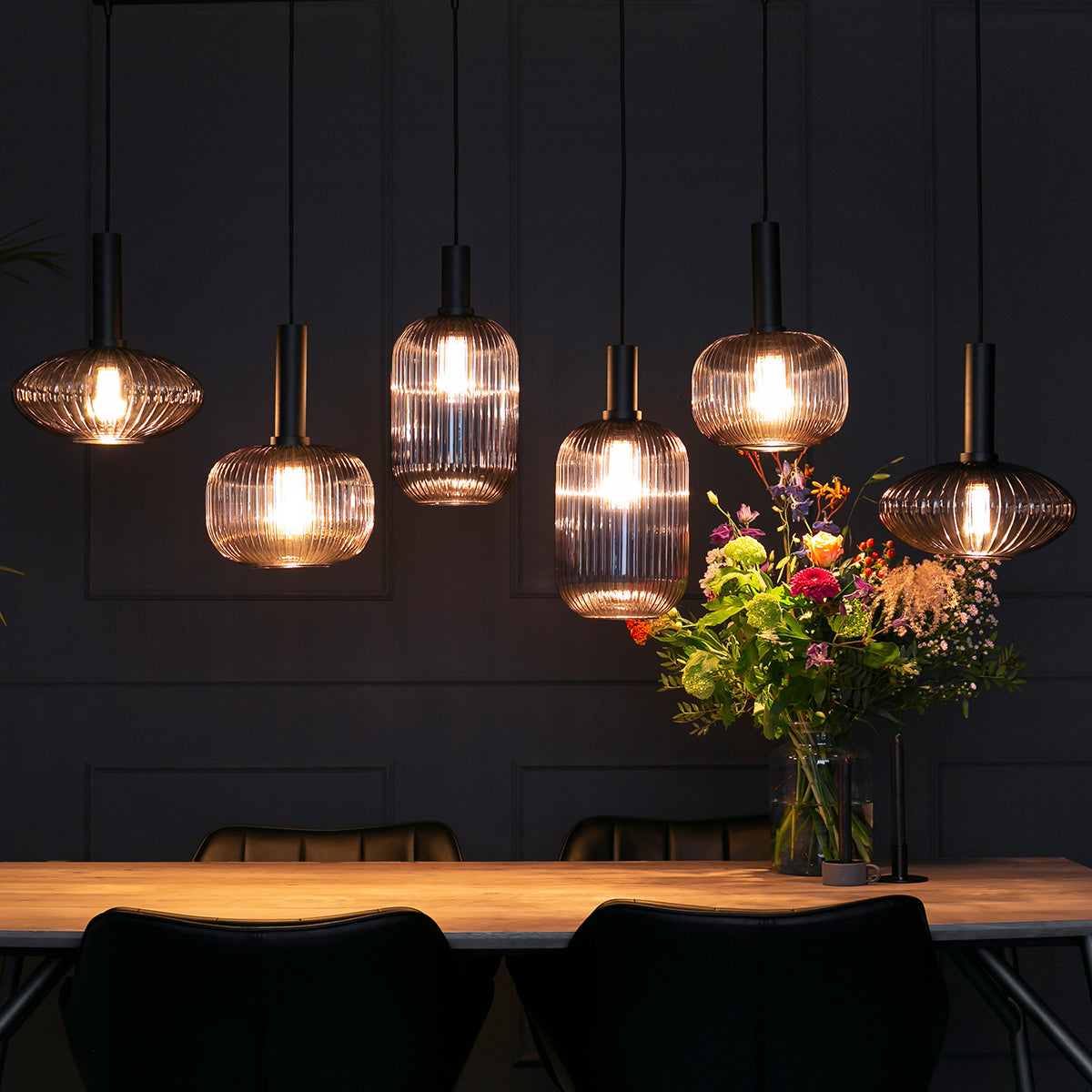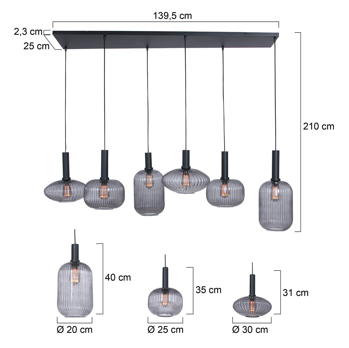 Steinhauer Danske hanglamp - zeslichts - rook glas - 140 cm breed - E27 - zwart