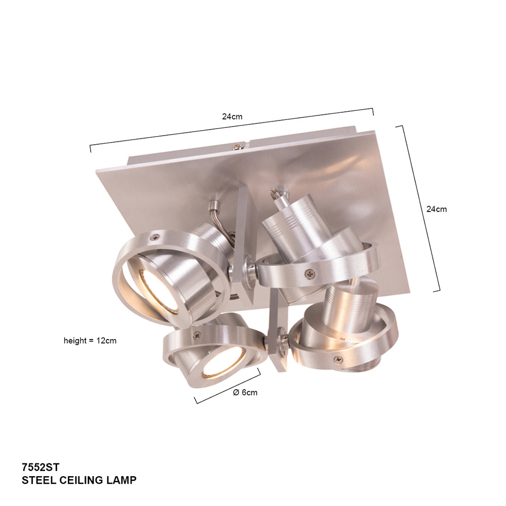 De spotjes Quatro met artikelnummer 7552ST wordt ontwikkeld door Steinhauer. Het EAN nummer waar dit product onder geregistreerd staat is 8712746099393. Deze stalen lamp is gemaakt van metaal. Deze