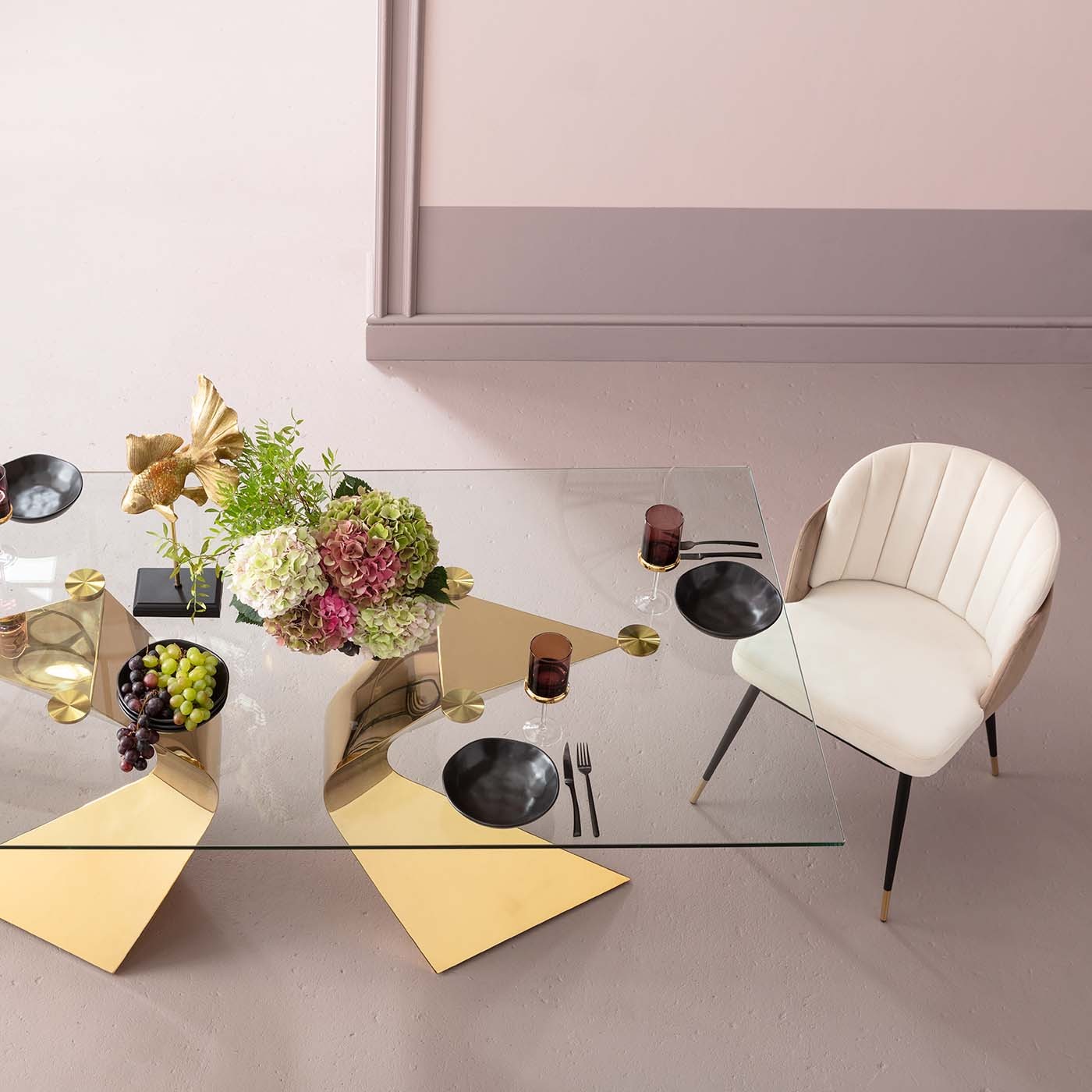 - Het stalen frame en de stijlvolle poten in zwart en goud voegen duurzaamheid en glamour toe aan het ontwerp.
