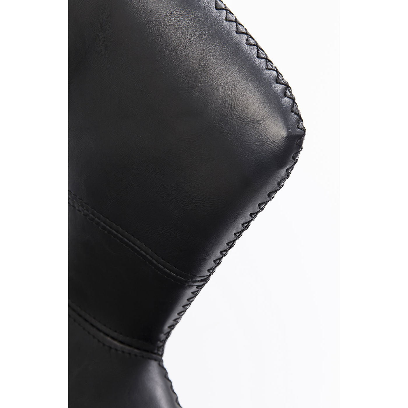 Breng karakter in uw interieur met deze stoel met zijn zwarte imitatieleerzitting ondersteund door gepoedercoate stalen poten. Door zijn neutrale kleur past het bij een vintage of industrieel interieur. De open onderkant van de rugleuning en de zichtbare kruisnaden geven het model een eigen karakter. Ook verkrijgbaar als barkruk.Maximaal draagvermogen: 130 kg. Zithoogte: 46 cm. Gedemonteerd geleverd.