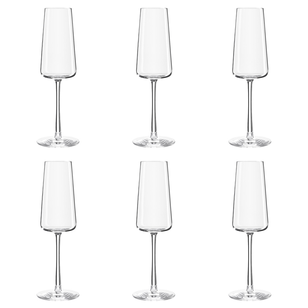 De platte bodem van de kelk zorgt voor een stabiele en praktische basis, terwijl de 24 cl inhoud de perfecte hoeveelheid biedt voor het genieten van champagne of mousserende wijnen. Deze champagneflûtes zijn niet alleen visueel indrukwekkend, maar ook functioneel, met een design dat de bubbels in de drank prachtig tot leven brengt. Een uitstekende keuze voor wie houdt van design en kwaliteit. Deze set bestaat uit 6 champagneflûtes.