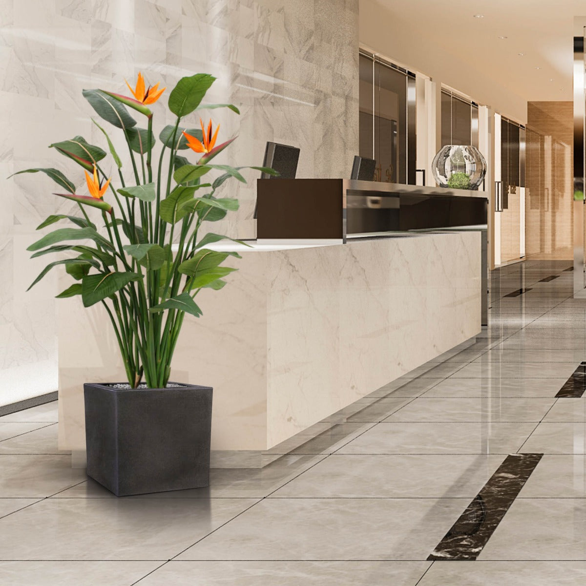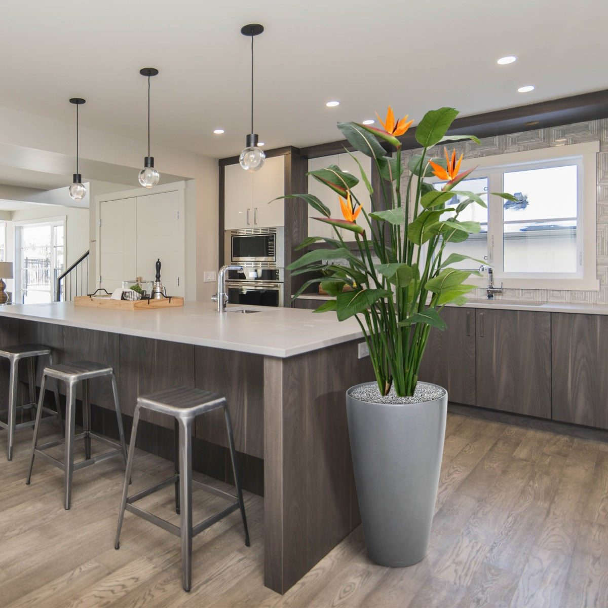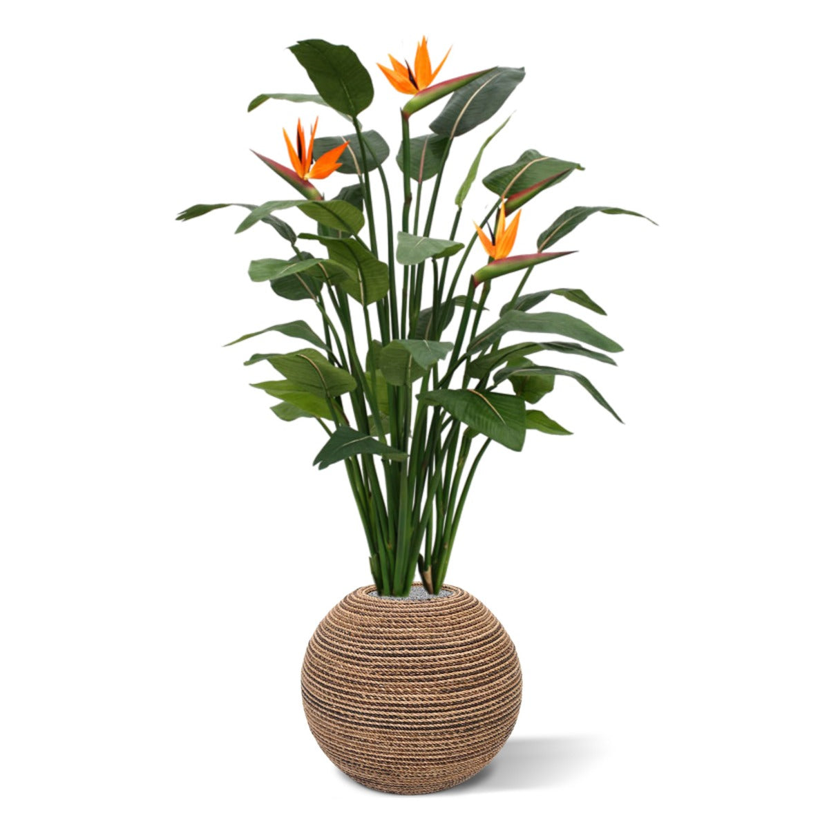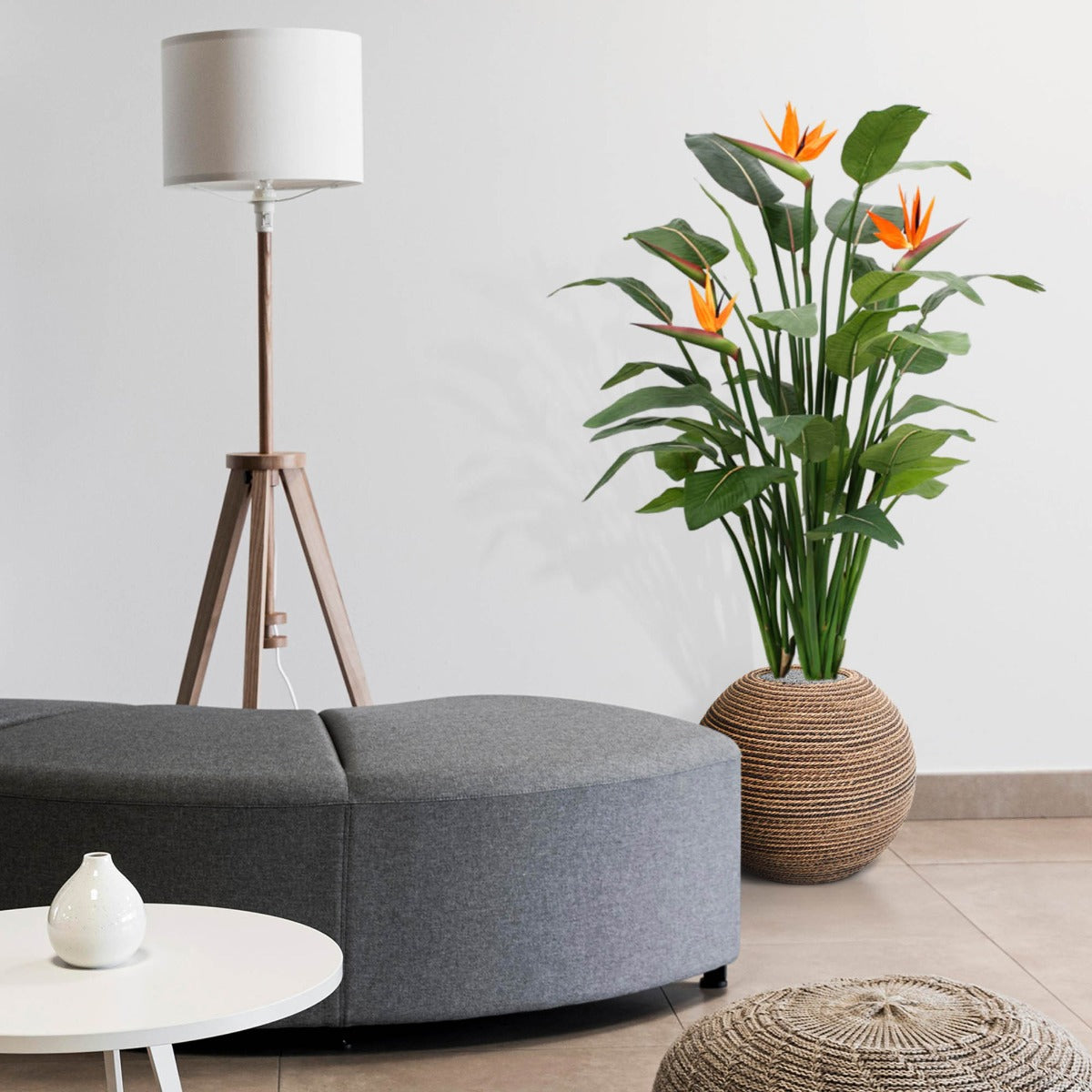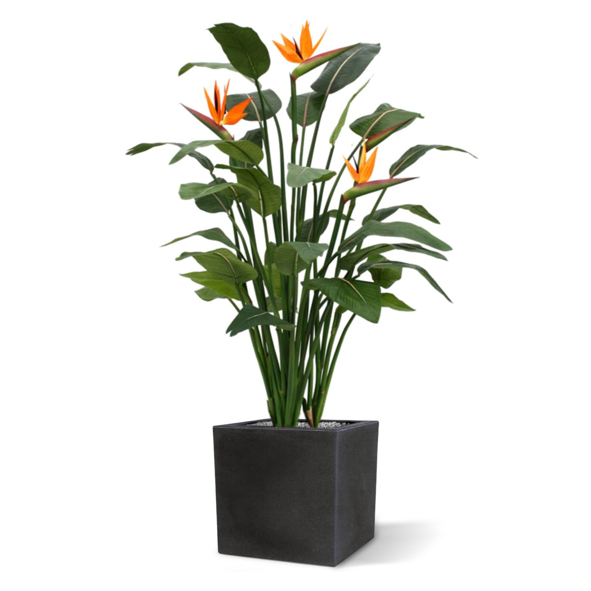 De Strelitzia, ofwel kunstplant paradijsvogelplant, staat vooral bekend om haar opvallende oranje bloemen. Deze bloemen zijn van bijzonder mooie kwaliteit en geven door hun opvallende oranje kleur elk interieur een zomerse aanblik. De grote